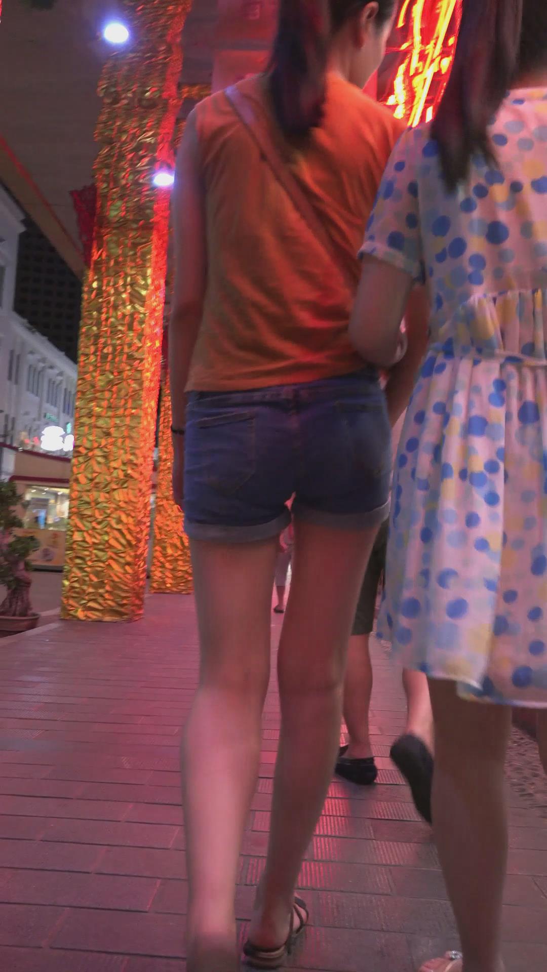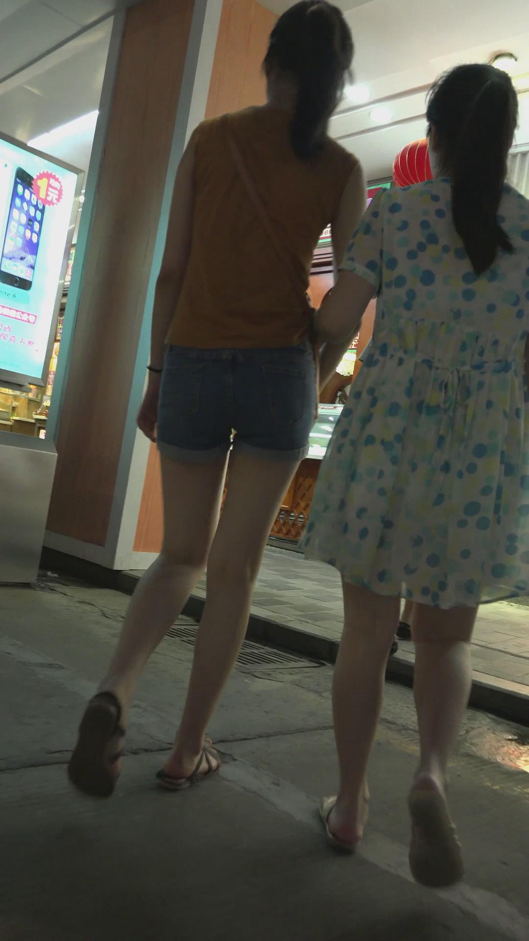 跟闺蜜逛夜市的牛仔热裤美腿少女 编号4590 |