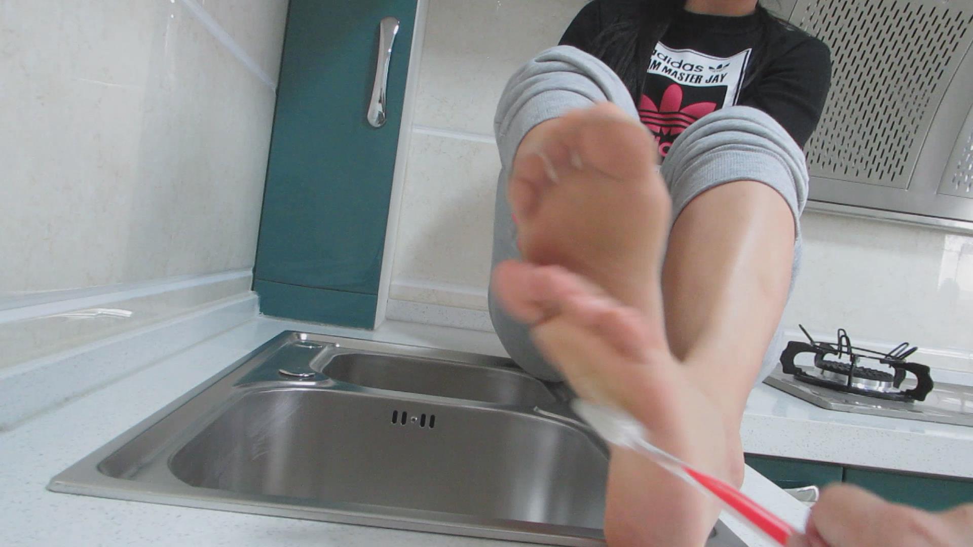 用牙刷挑逗美女的干净玉足 编号6440 |