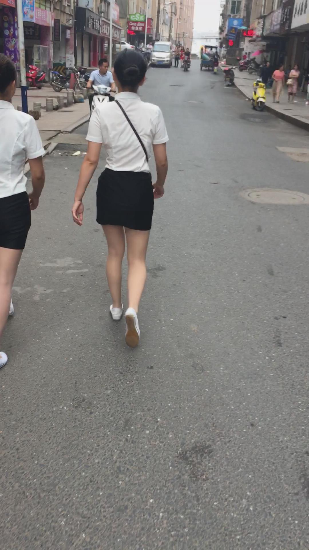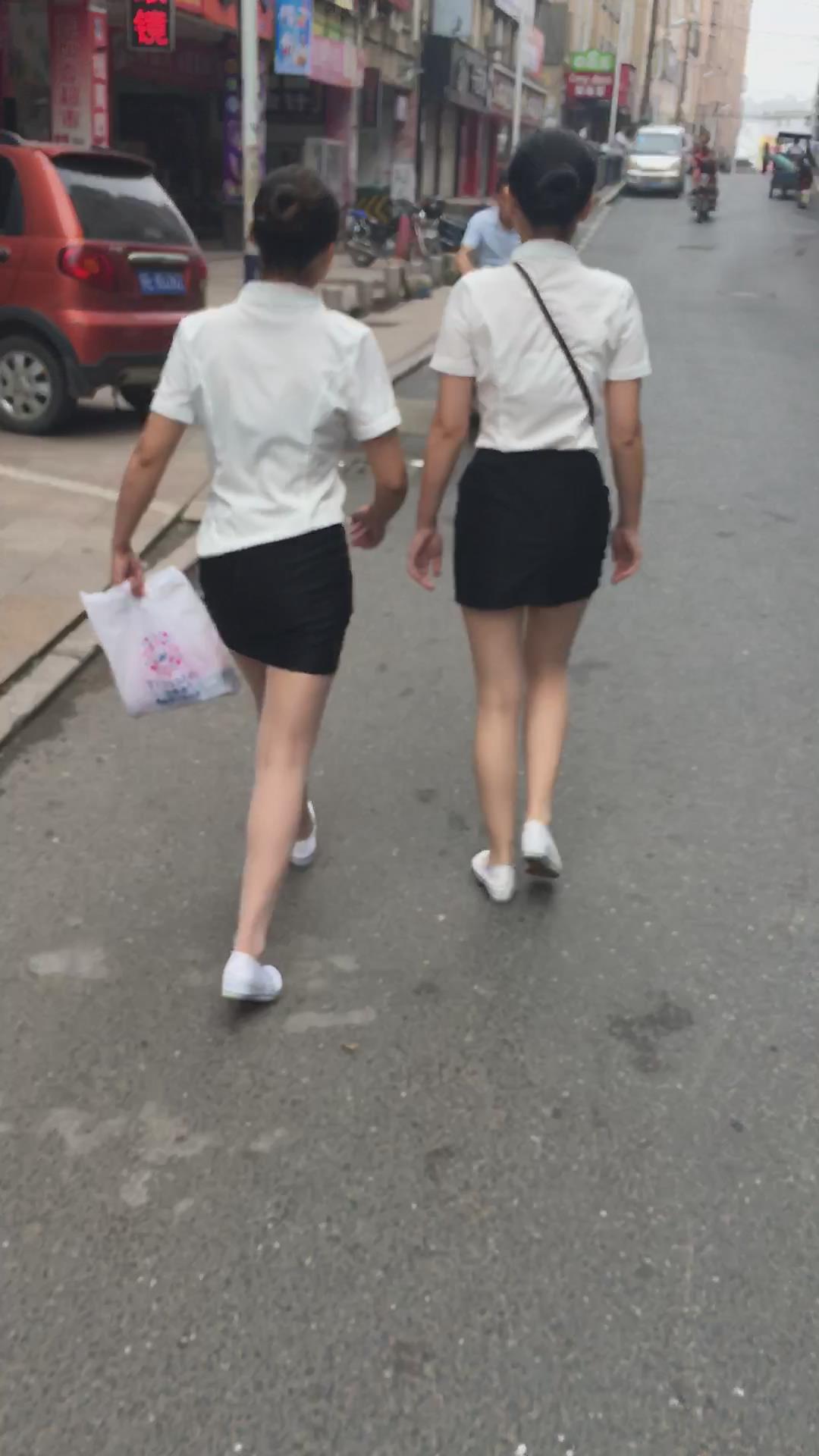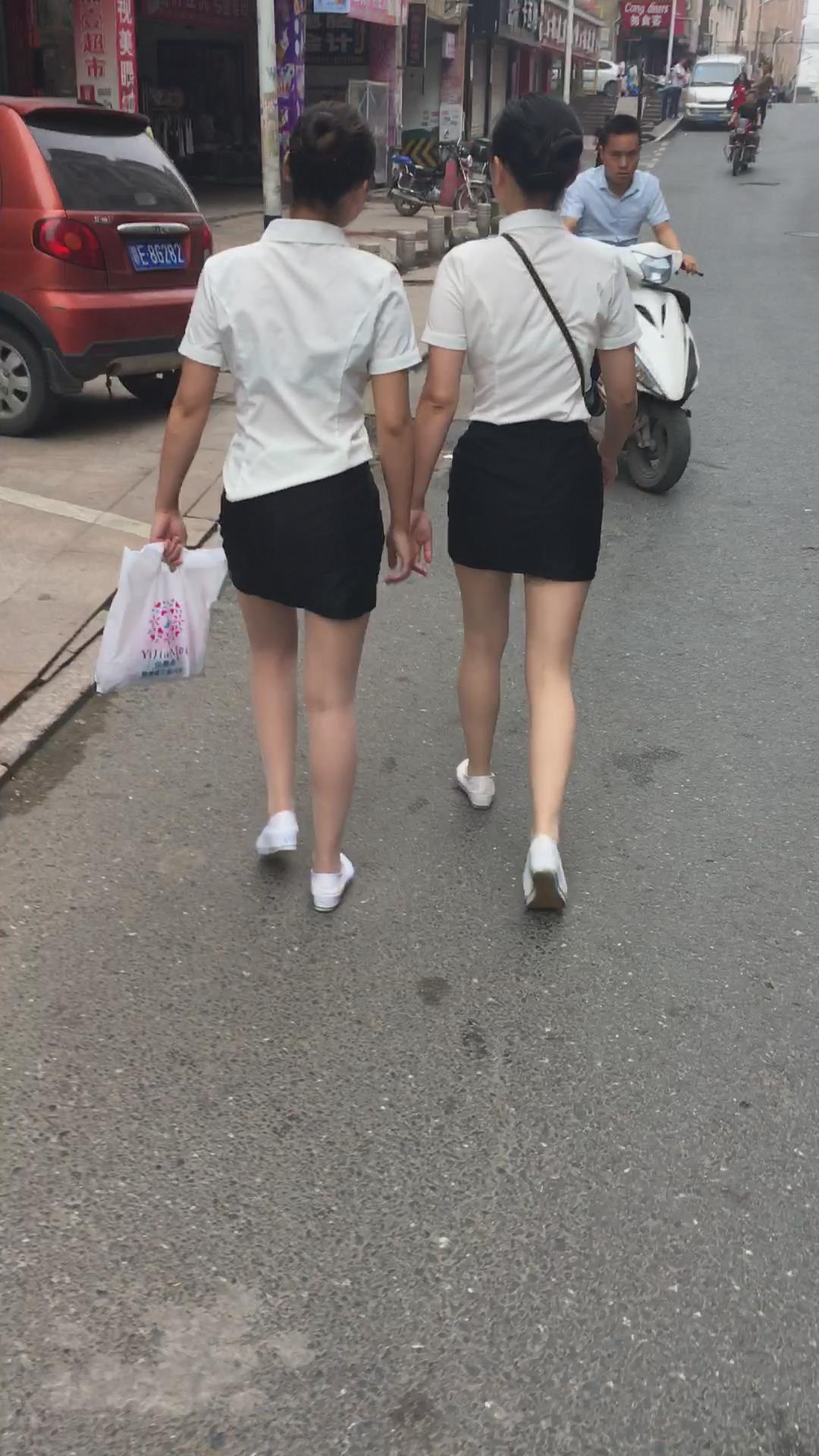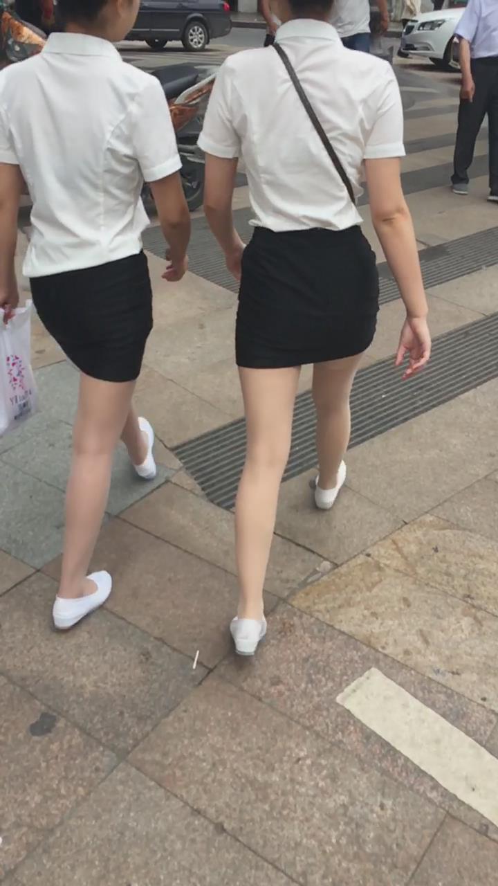 白T恤包臀裙肉丝袜街拍美腿美女姐妹 编号2109 |