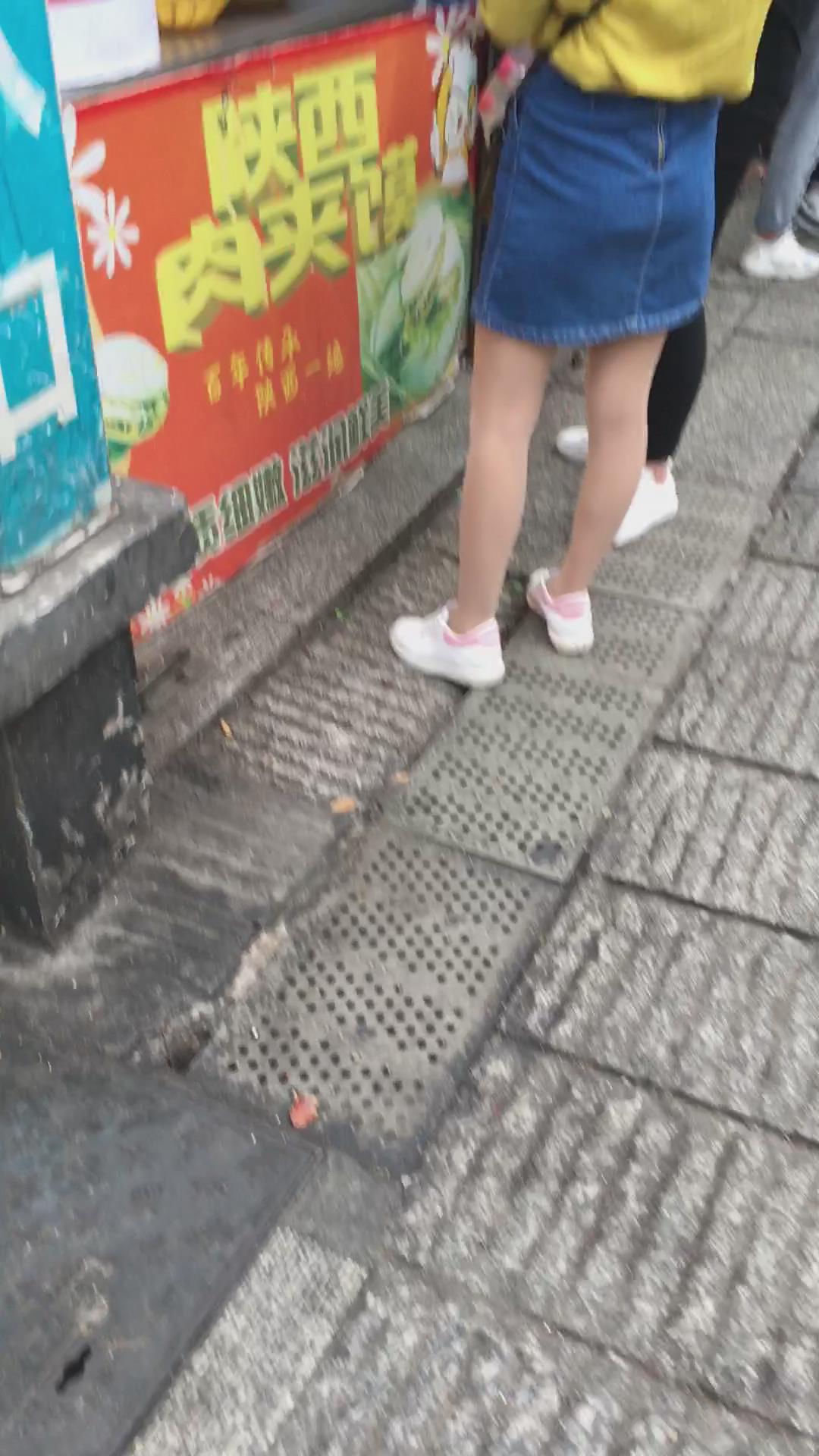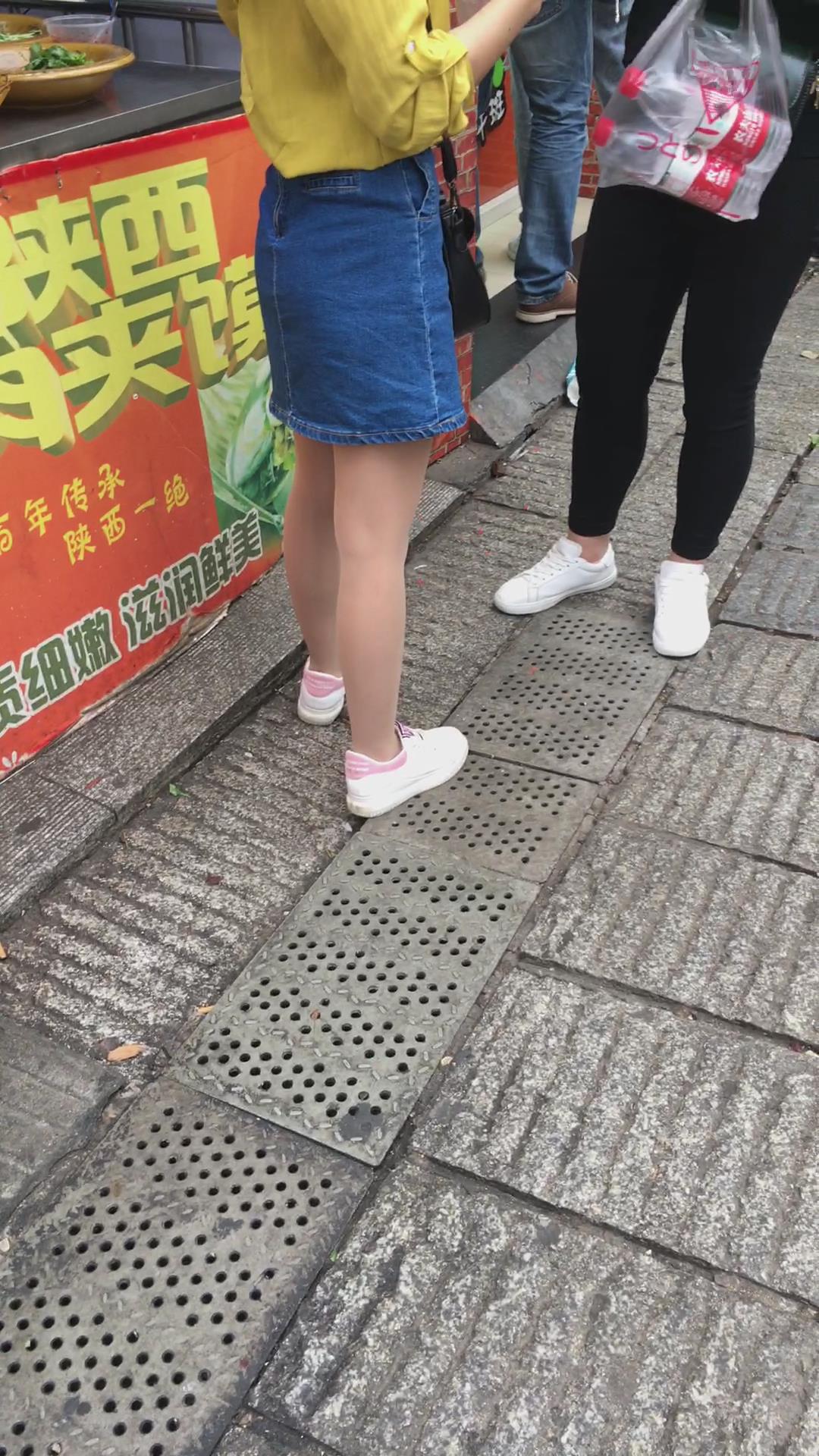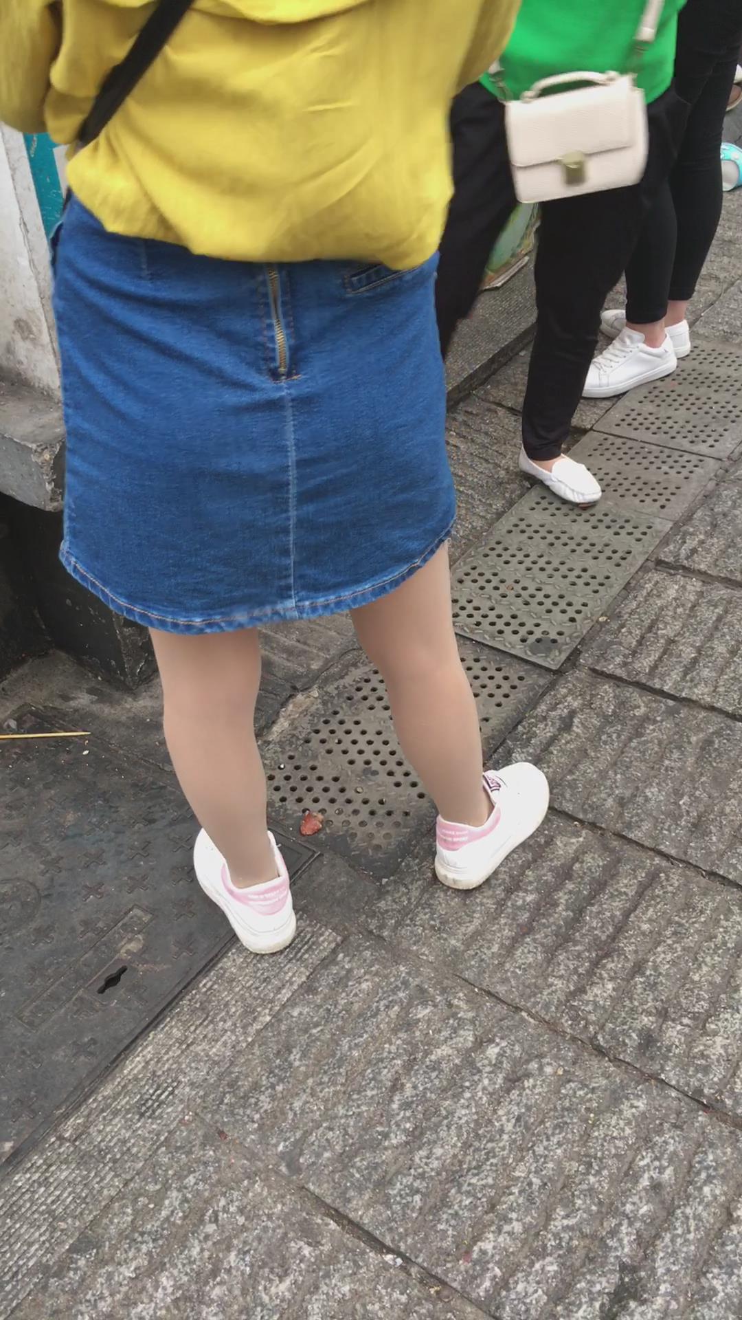 黄衣牛仔裙街拍肉丝美女 编号2165 |