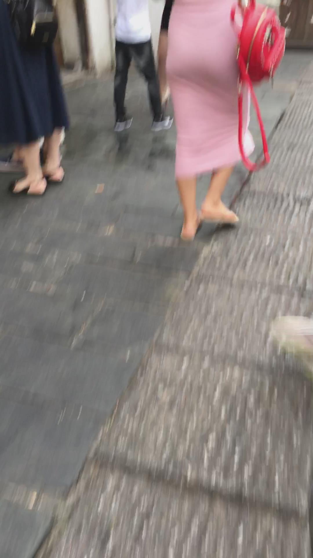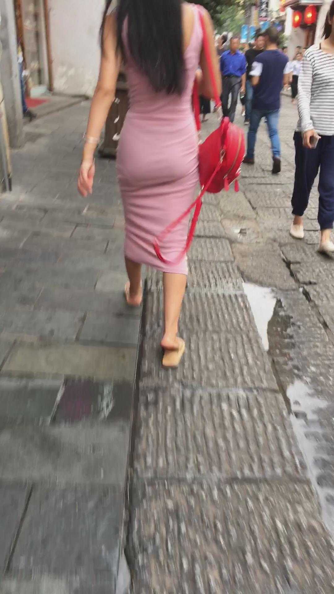 街拍粉色性感包臀裙极品美女 编号2193 |