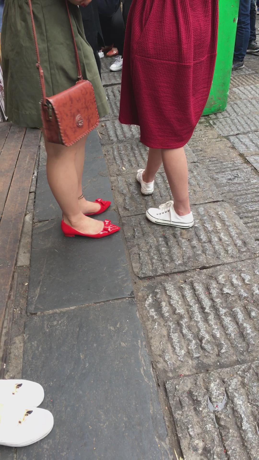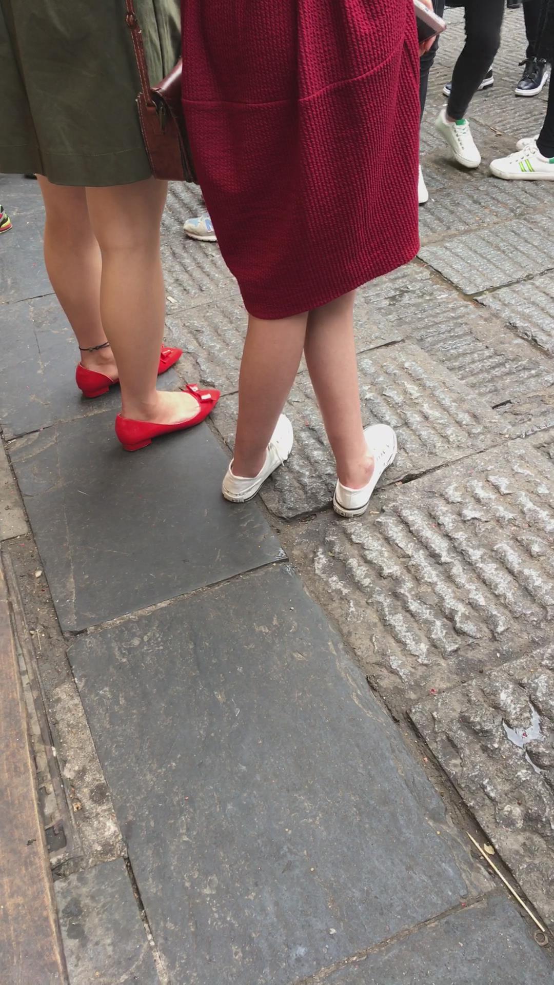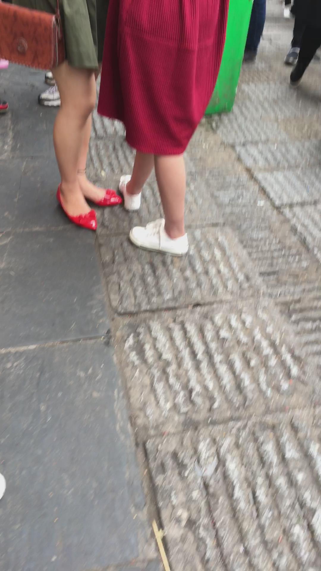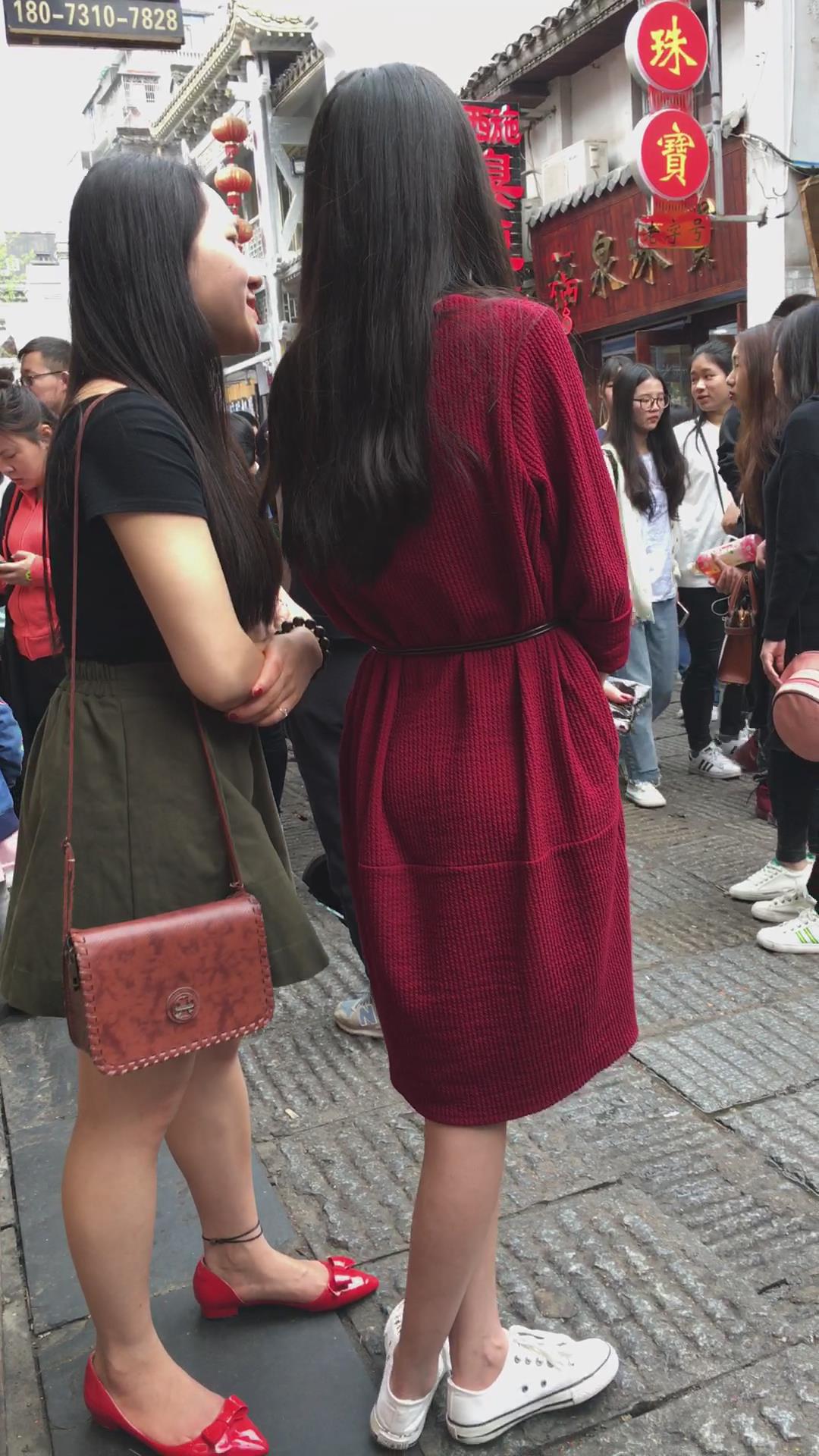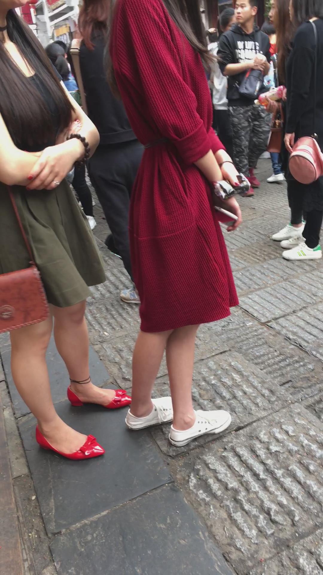 街拍大红色连衣裙漂亮学姐 编号2197 |