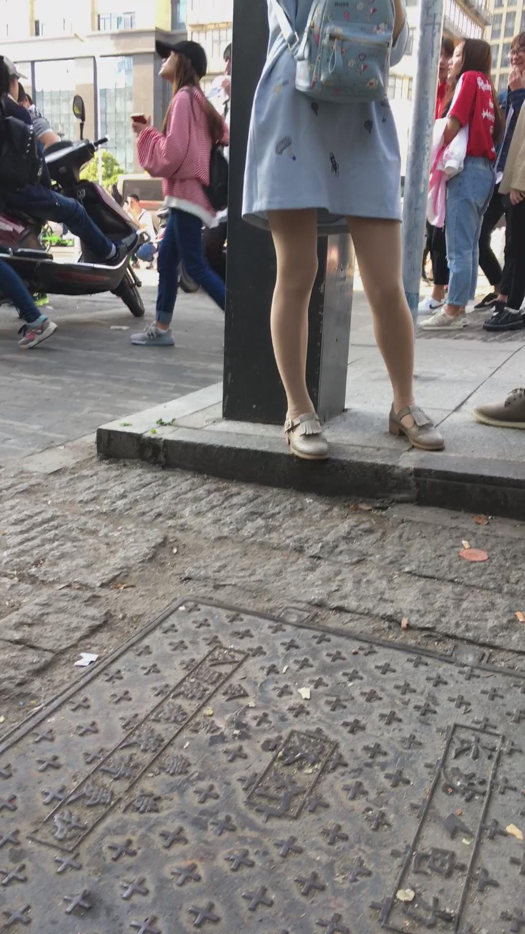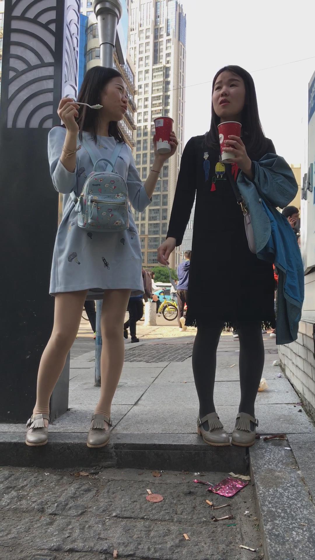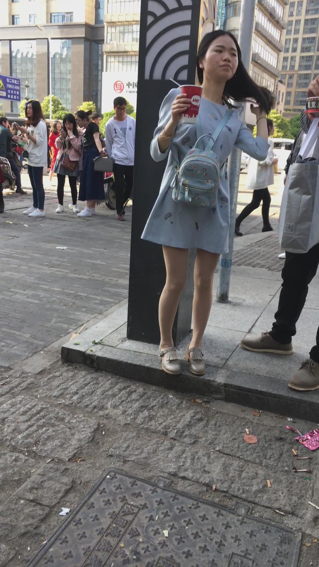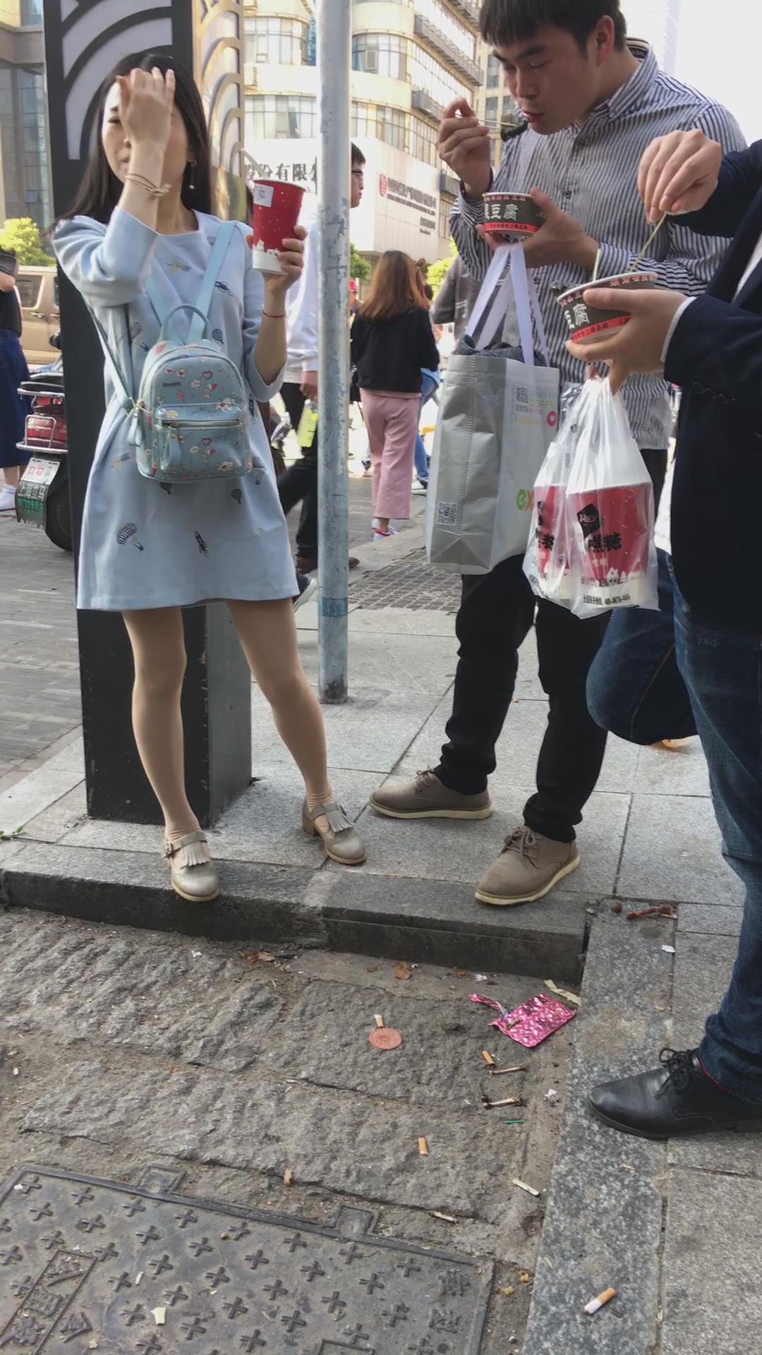 街拍美腿连衣裙清纯气质小姐姐路边吃雪糕 编号2220 |
