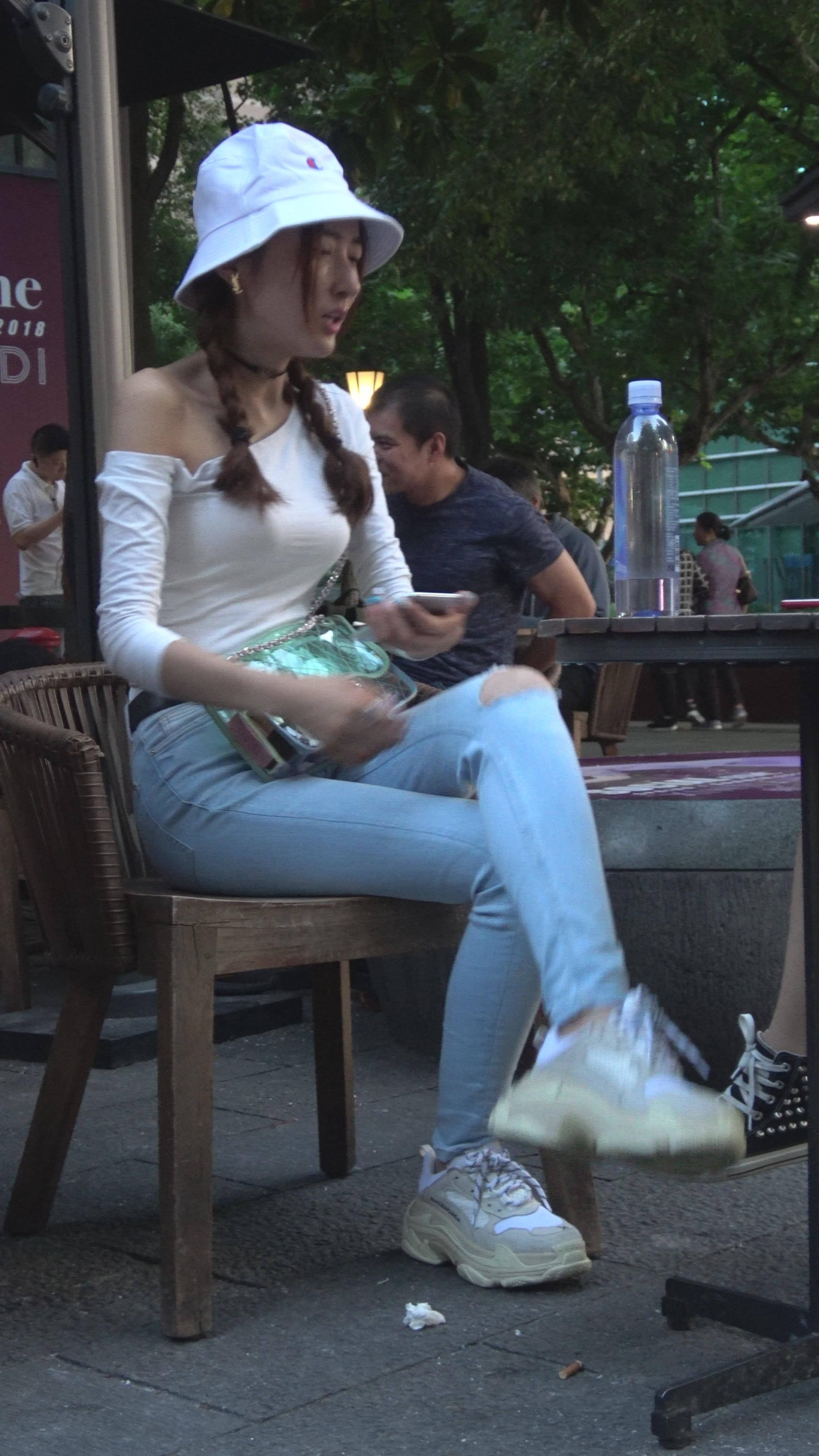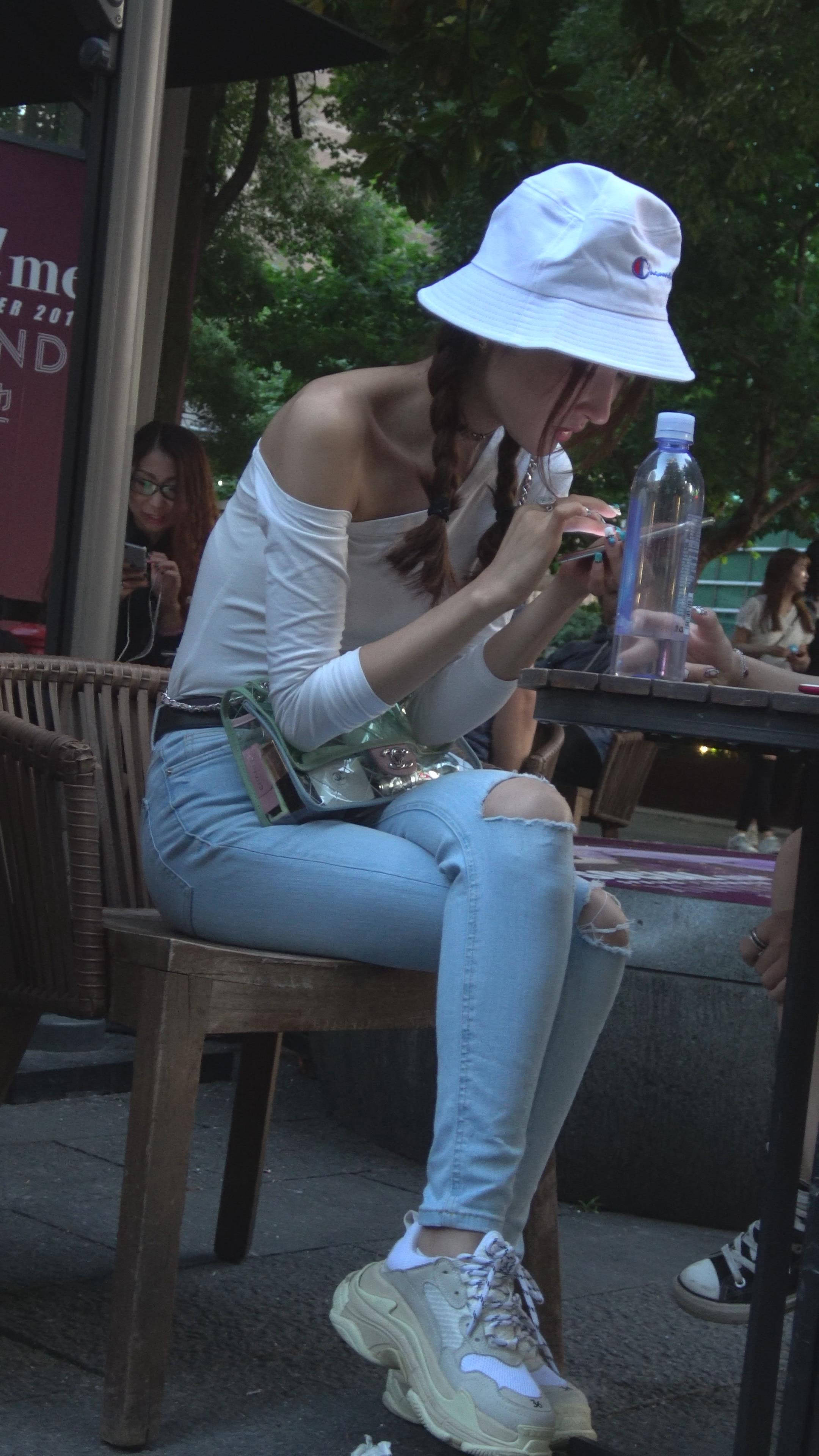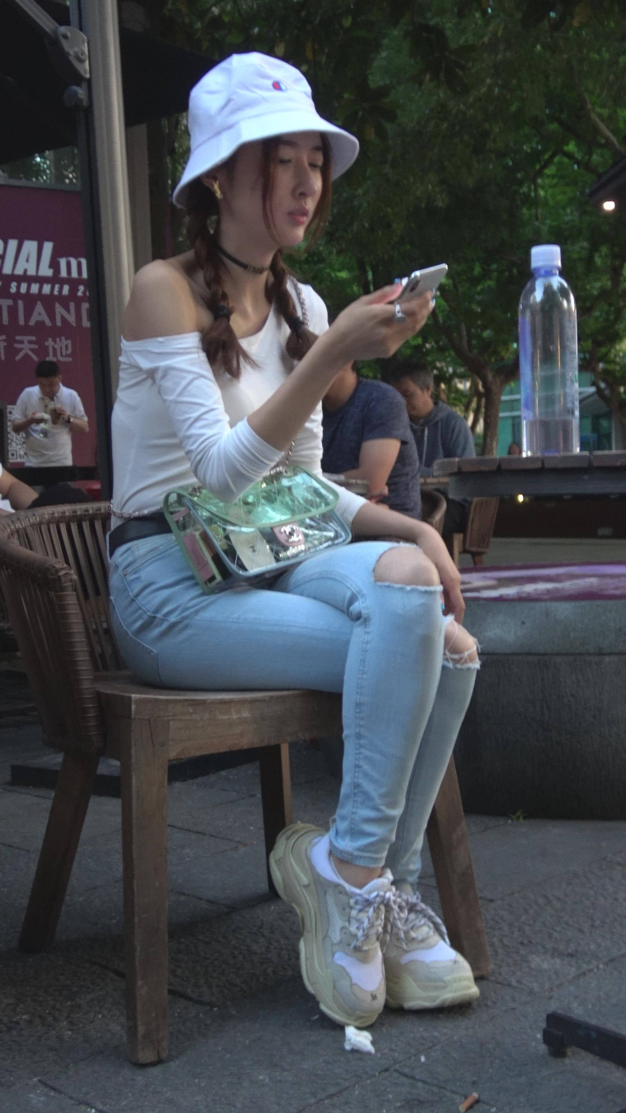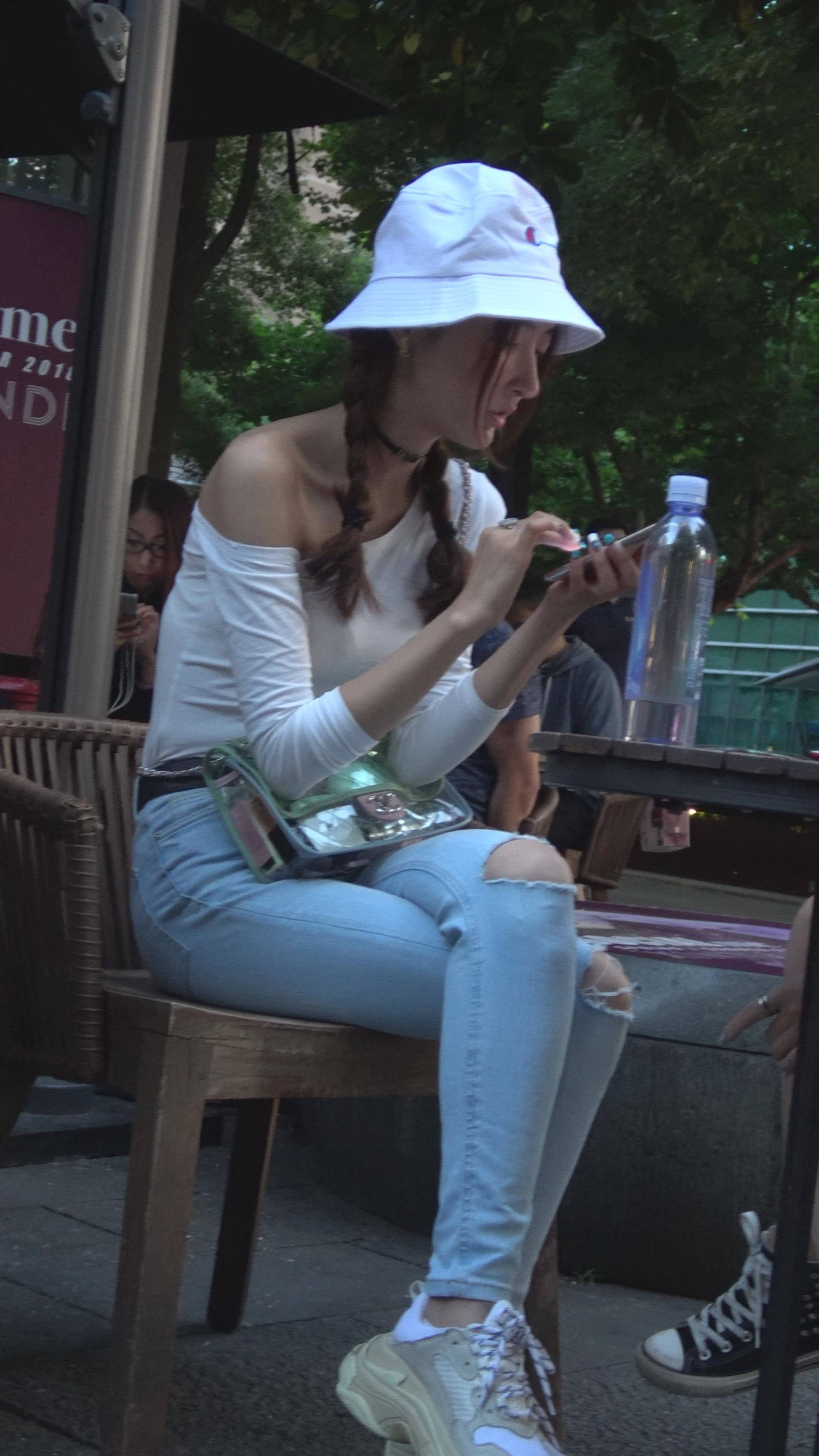 4K 破洞牛仔裤露肩小清新街拍美女 编号7969 |