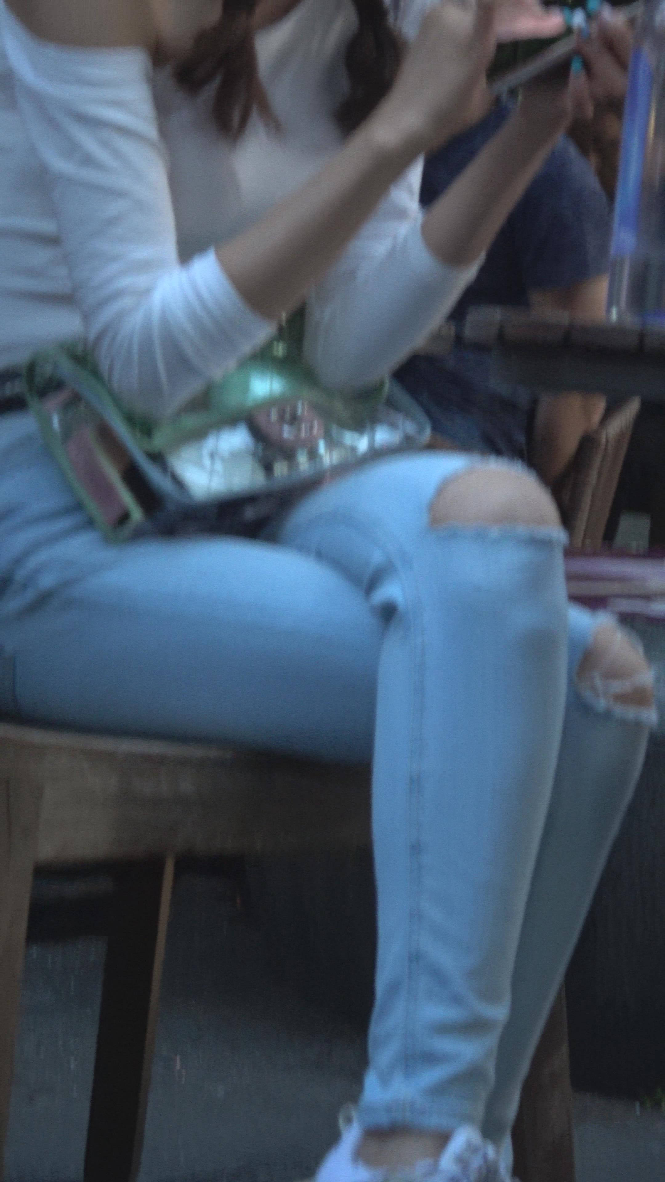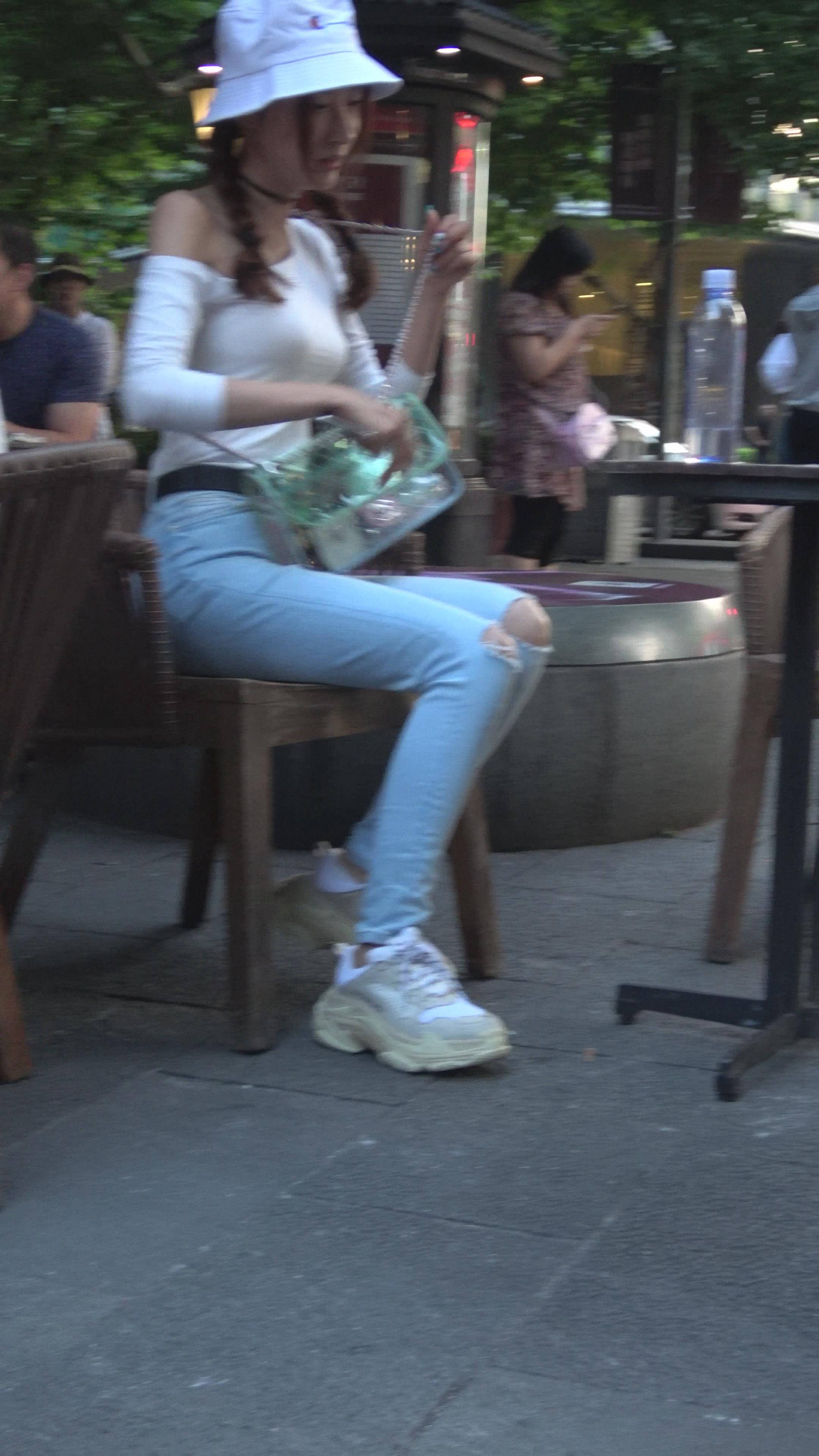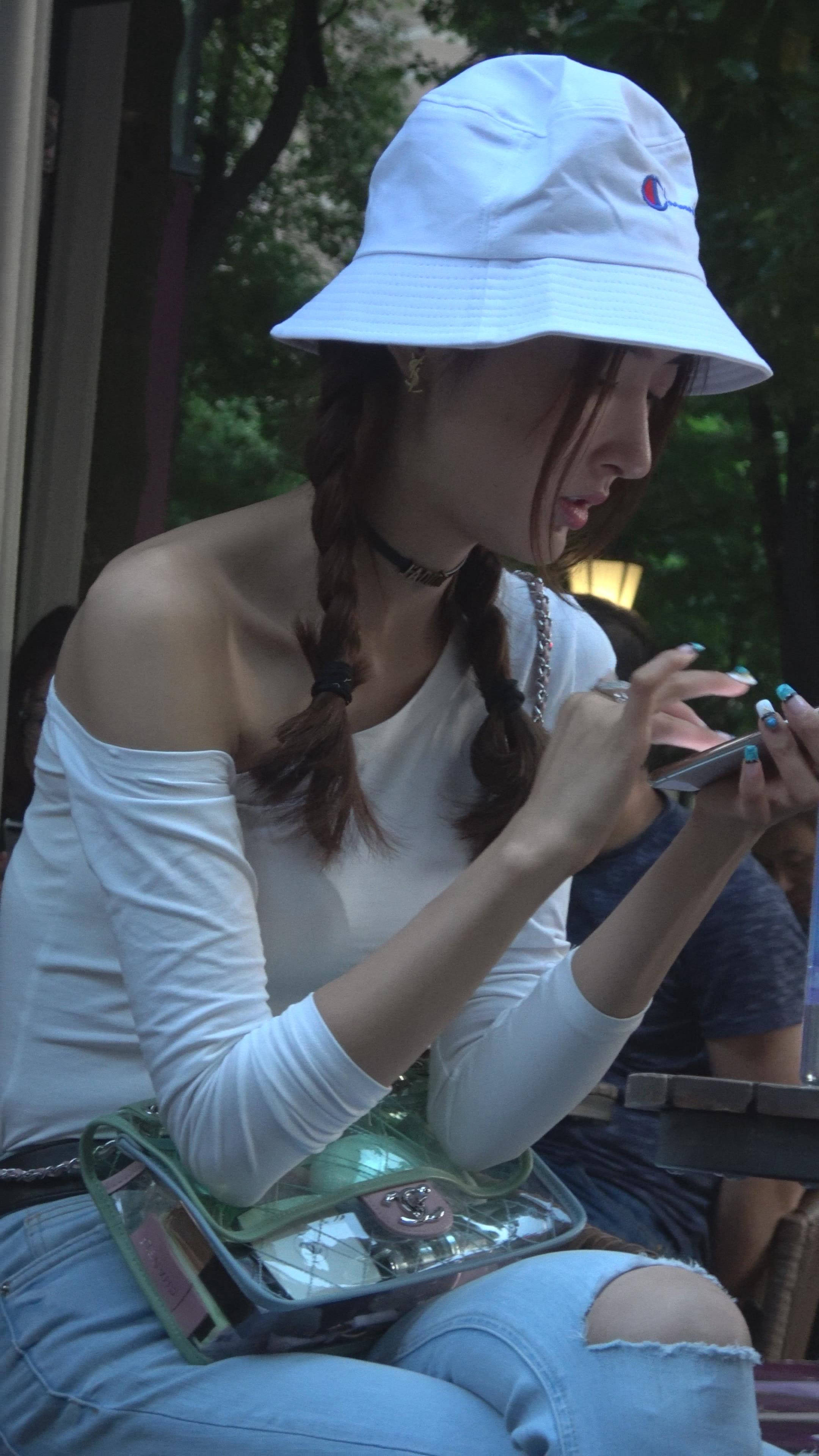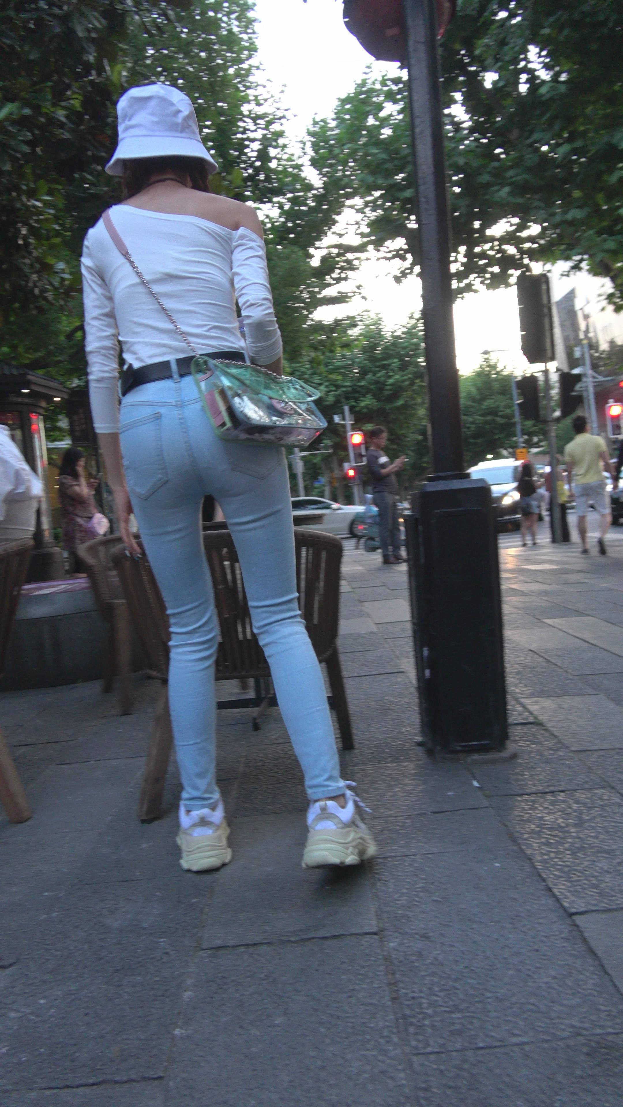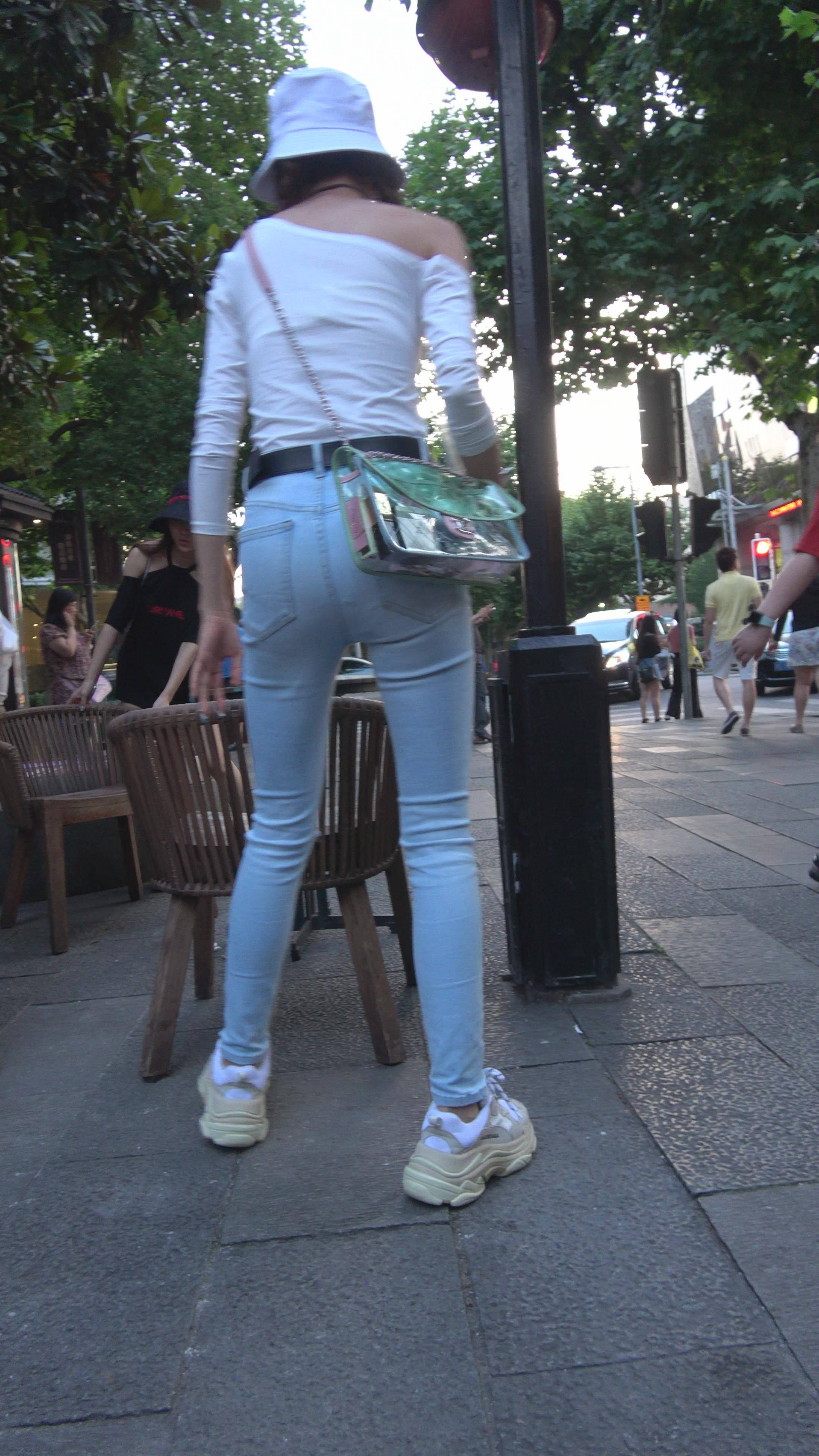 4K 破洞牛仔裤露肩小清新街拍美女 编号7969 |