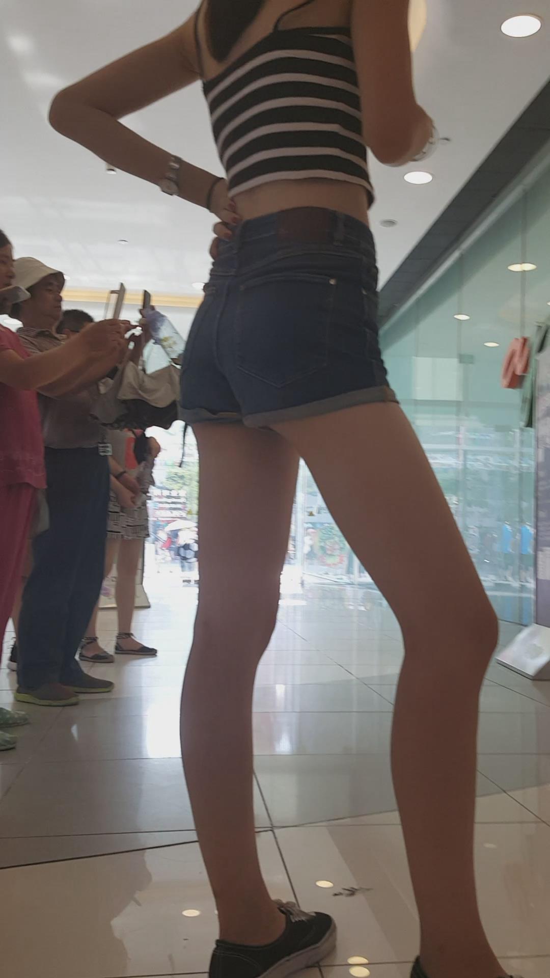 商场内拍摄性感高腰长腿牛仔热裤美女。 编号4651 |