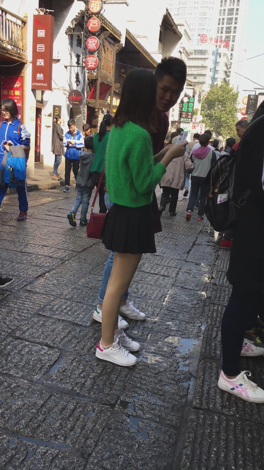 排队的绿色毛衣肉丝袜短裙青春小美女 编号2382 |