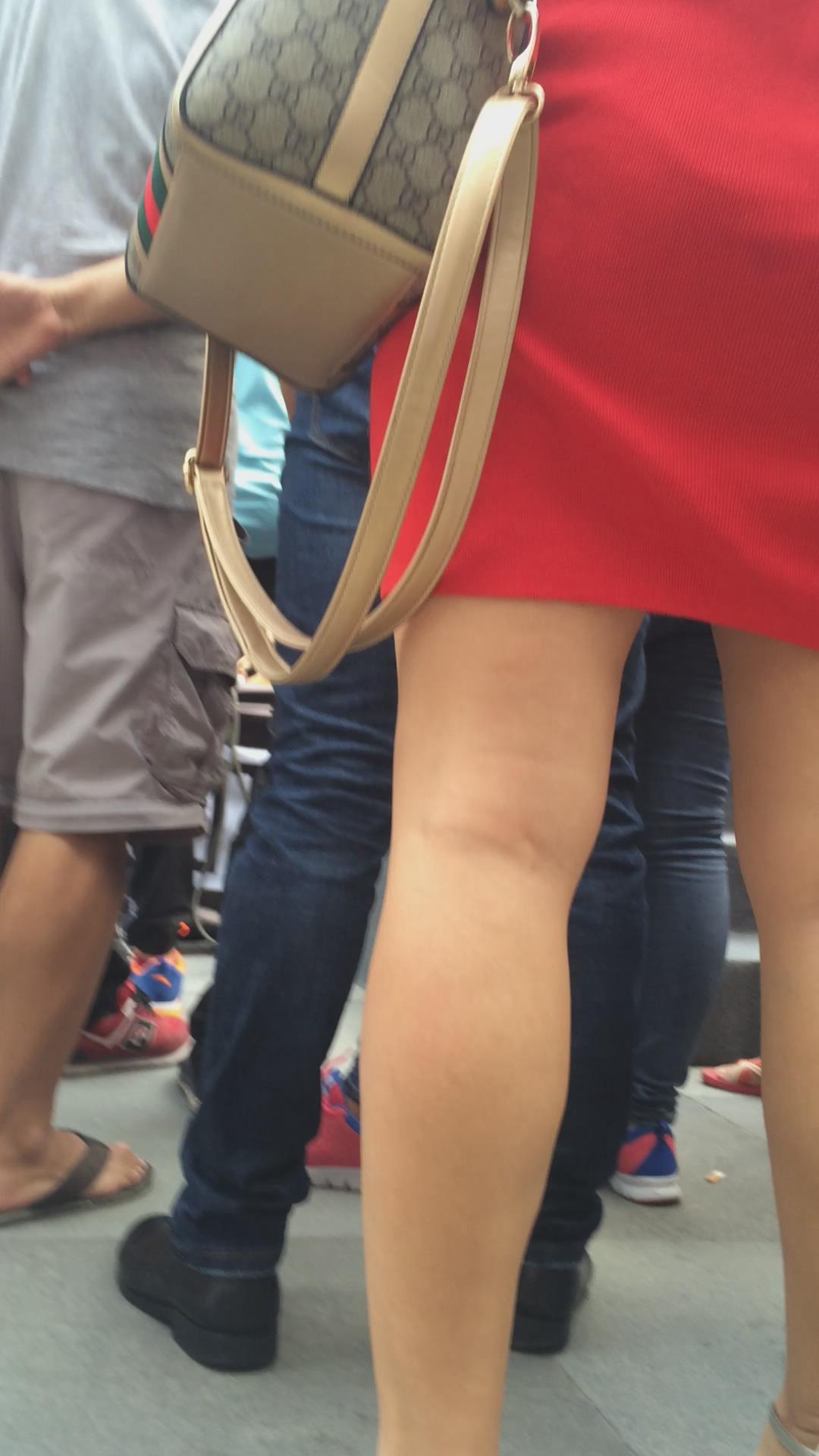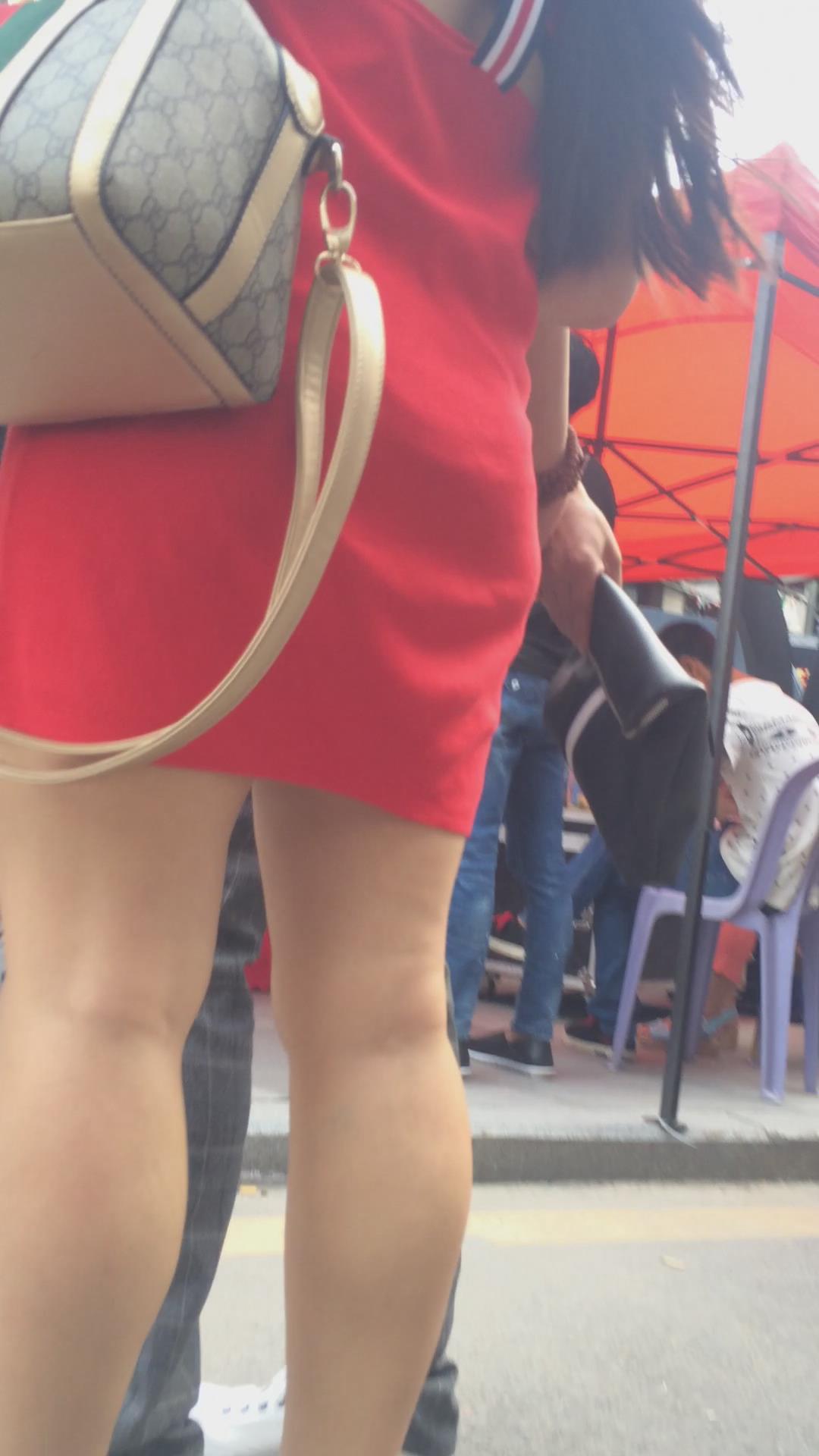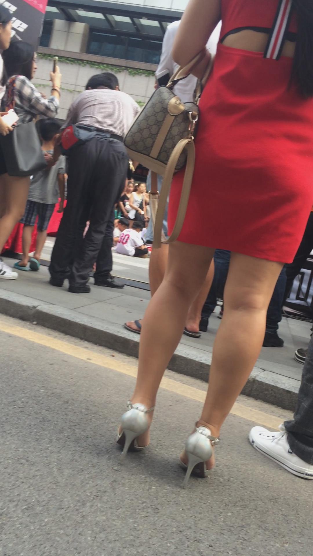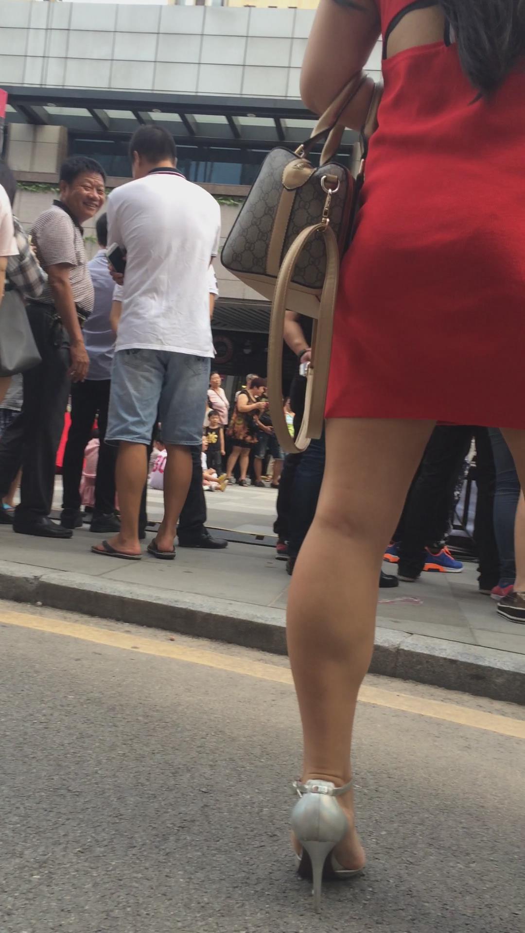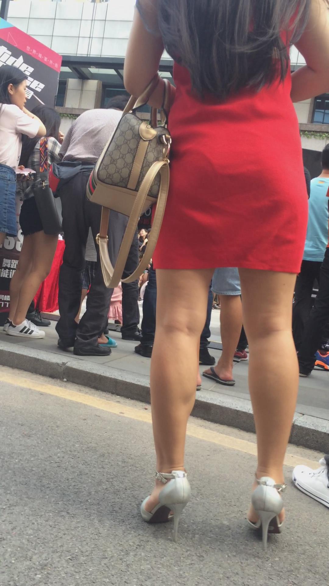 街拍美臀光腿高跟鞋的红色连衣裙少妇 编号2427 |