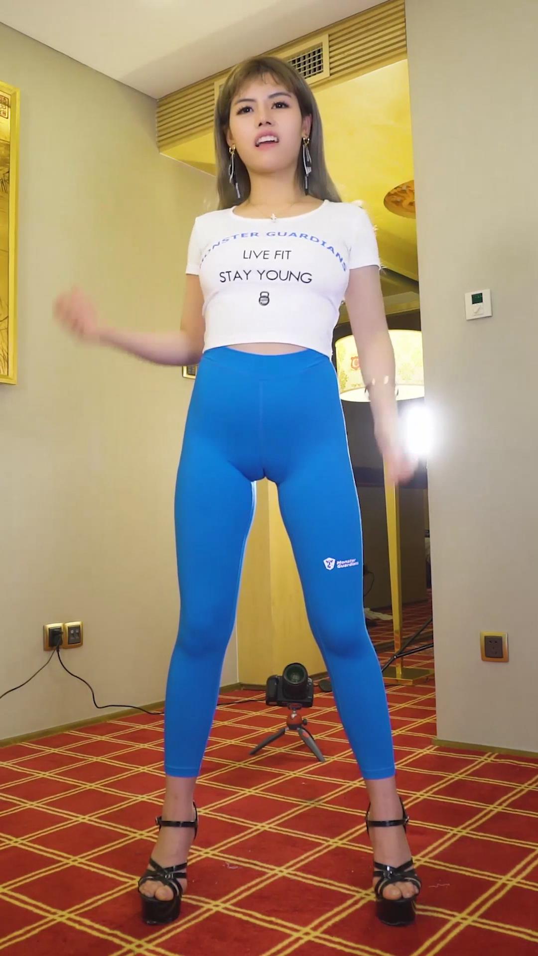 超级蓝色紧身裤肥妹三角区骆驼趾美女热舞 编号6846 |
