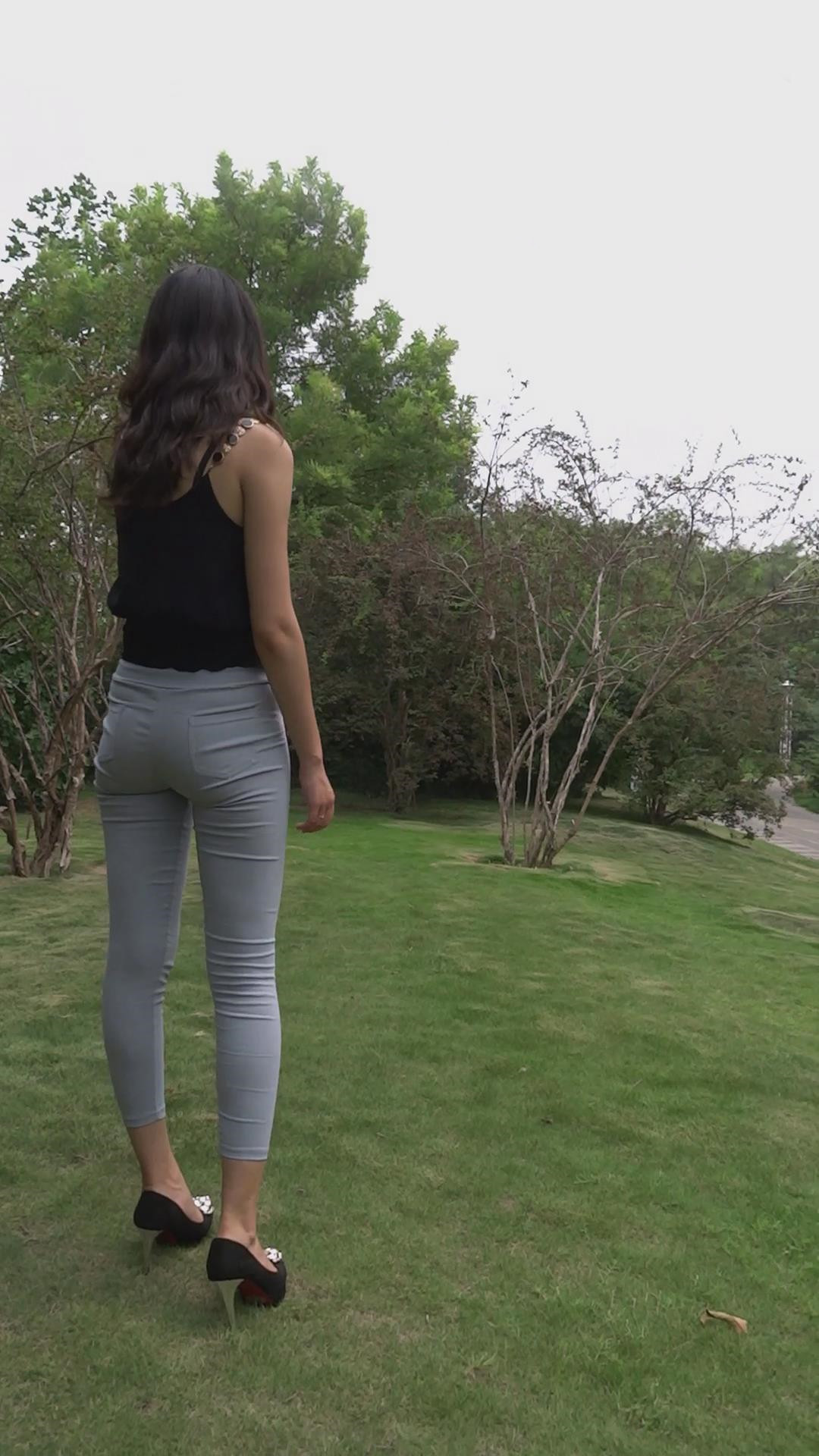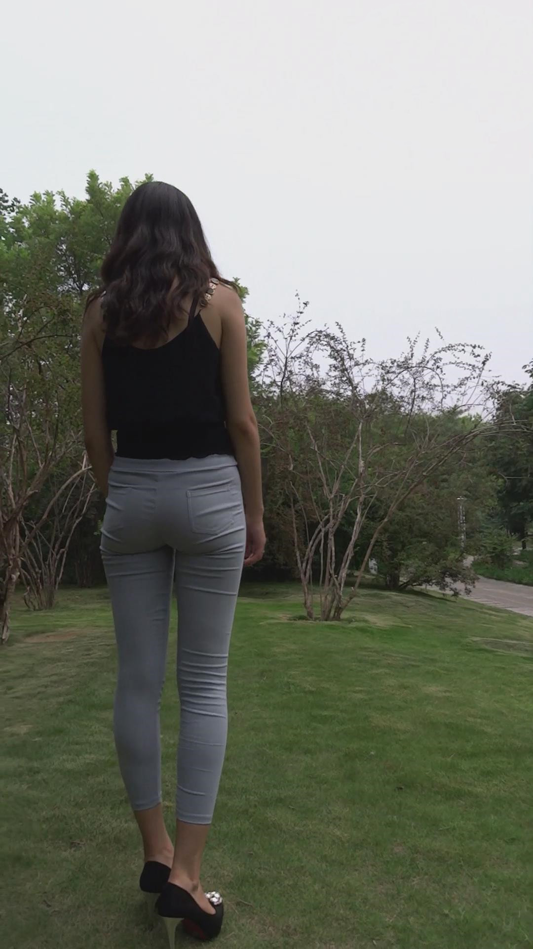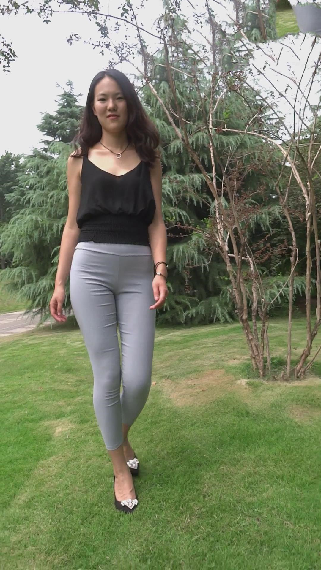 公园模拍紧身宽臀灰色紧身裤美女 编号6884 |