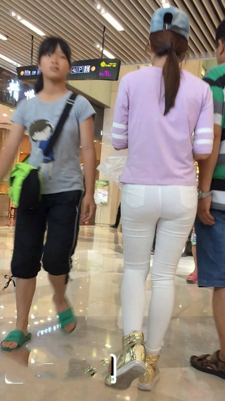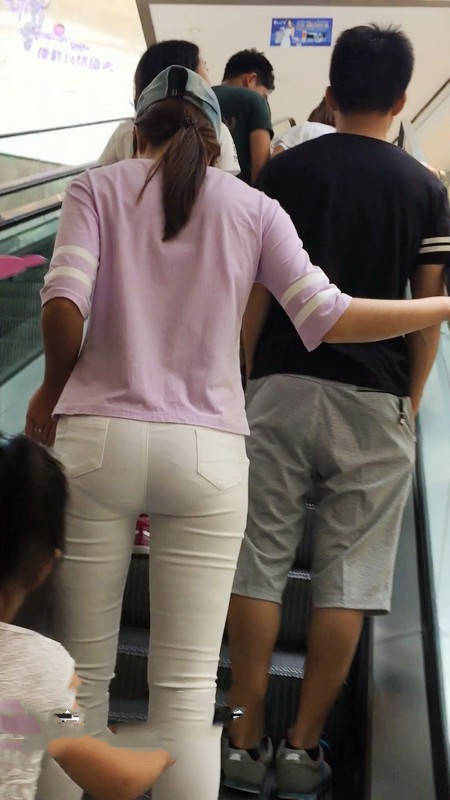 【编号777】街拍上电梯的紧身白裤翘臀MM |
