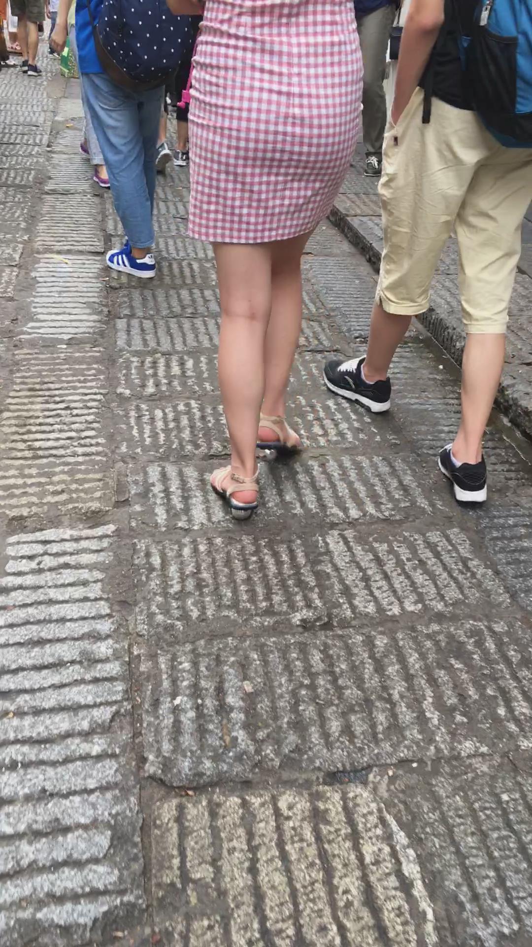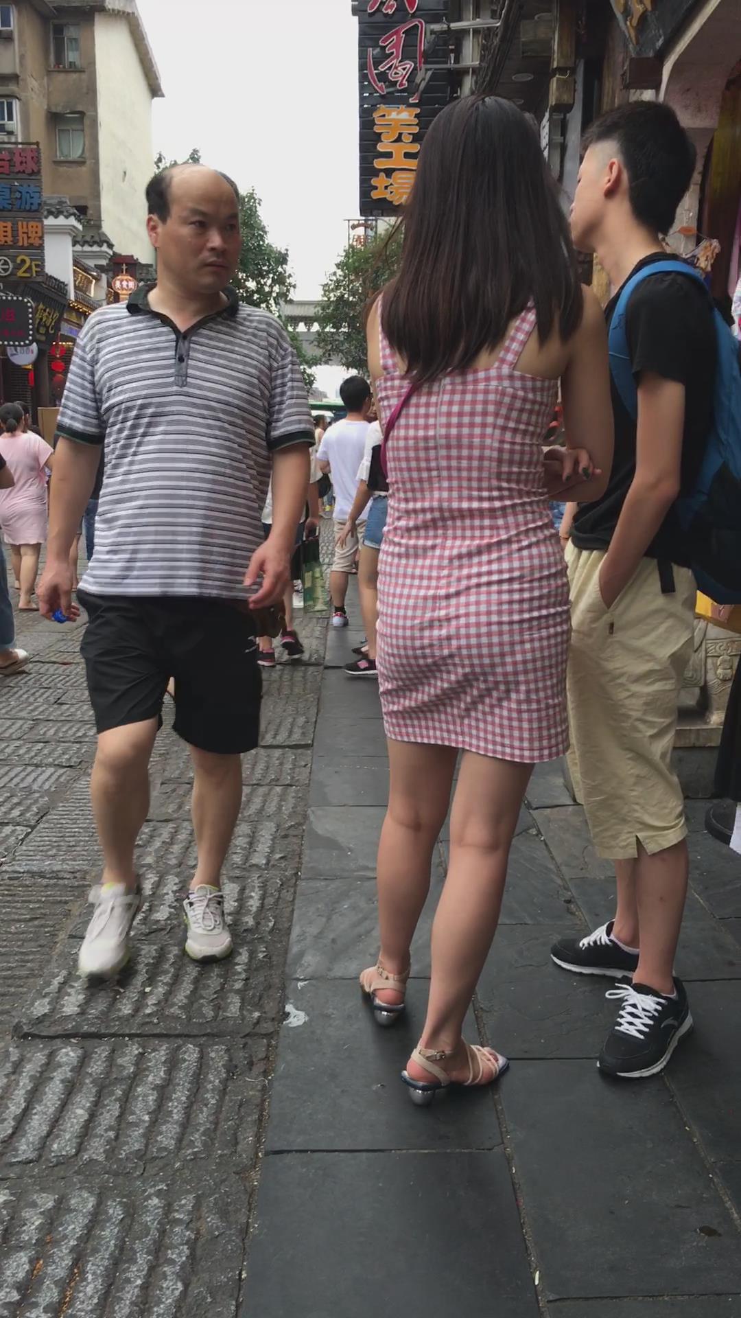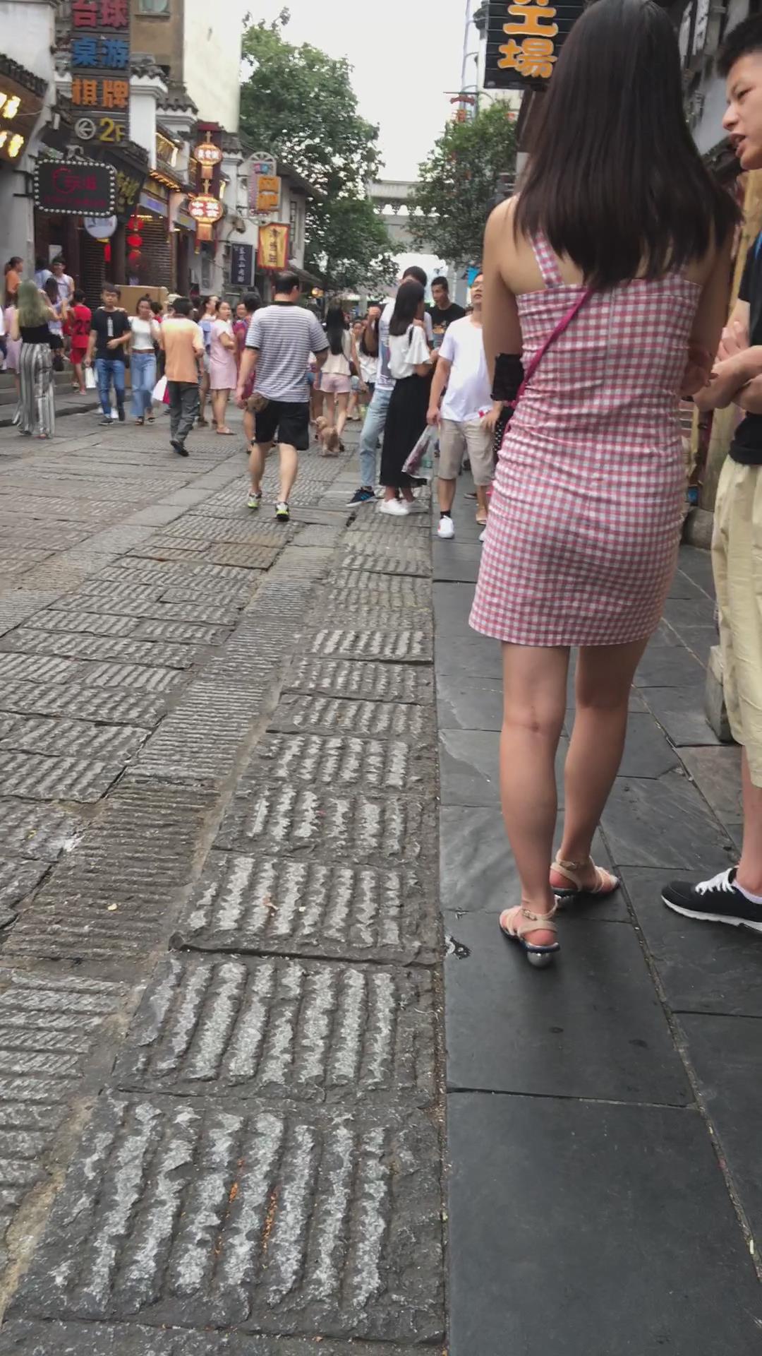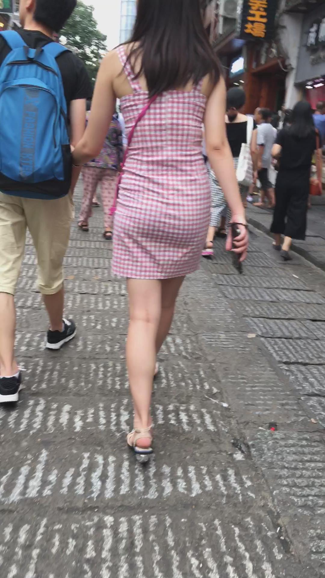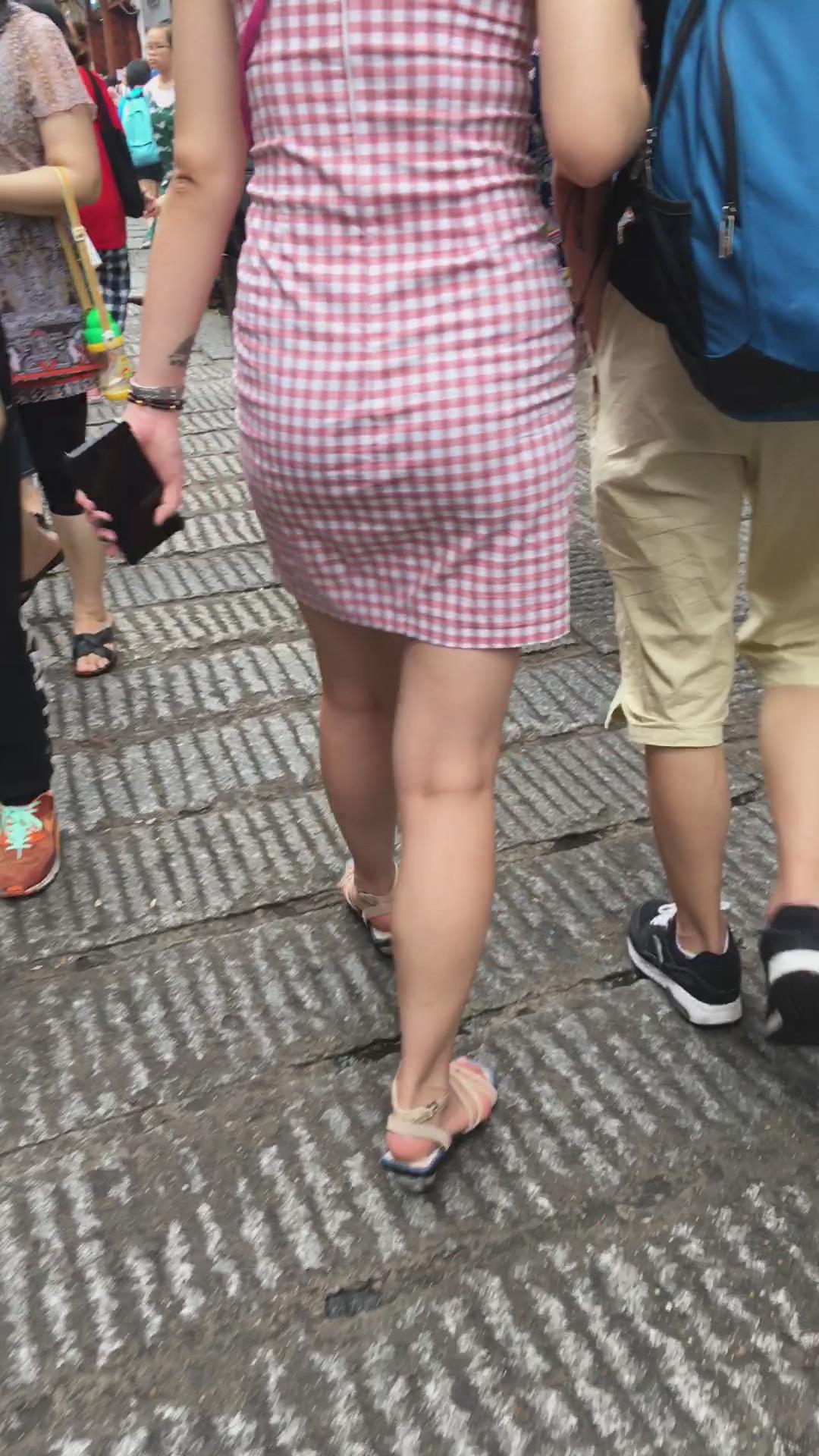 街拍格子连衣裙风韵身材少妇 编号2022 |
