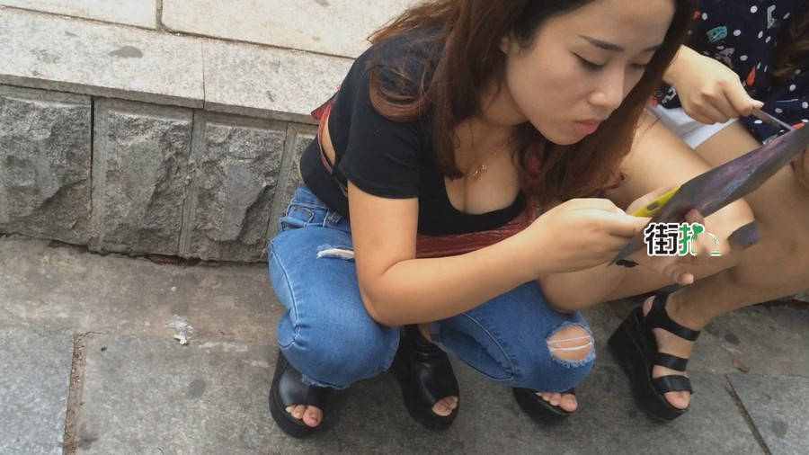 【编号882】街拍紧身蓝牛大胸妹 |