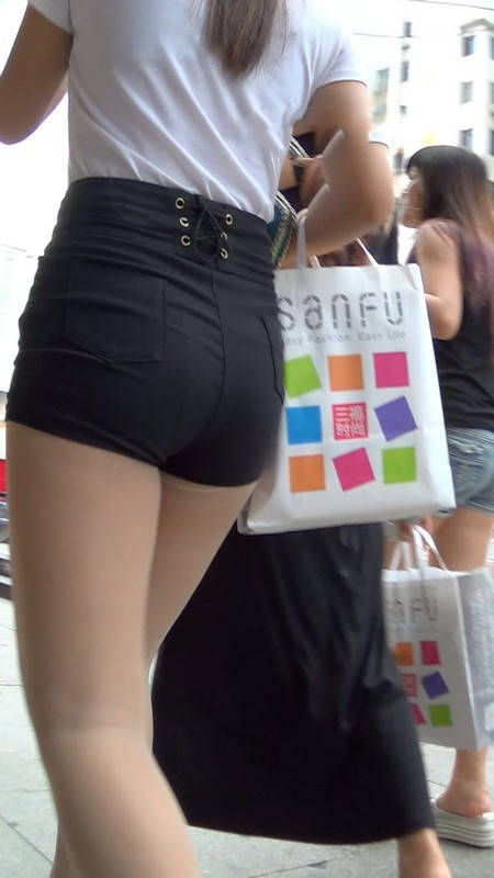 【编号930】街拍丝袜黑短裤丰满紧身肥臀 |