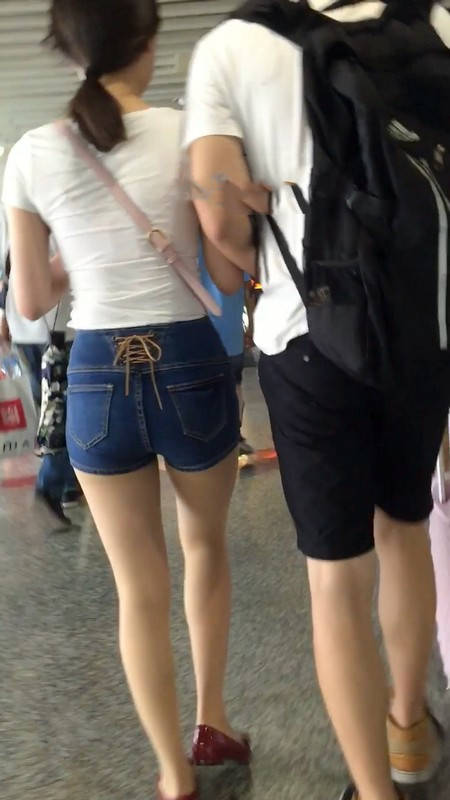 【编号1012】街拍地铁站的牛仔热裤皮肤白皙美女 |