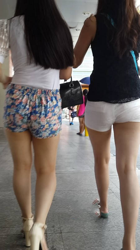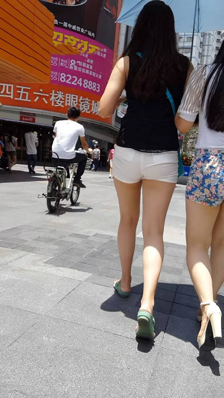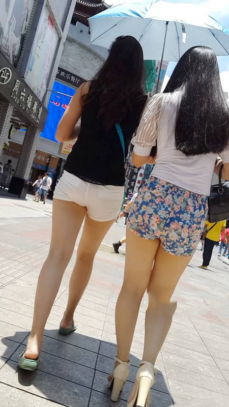 【编号1029】街拍白裤花裤两姐妹 |