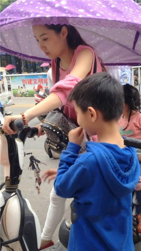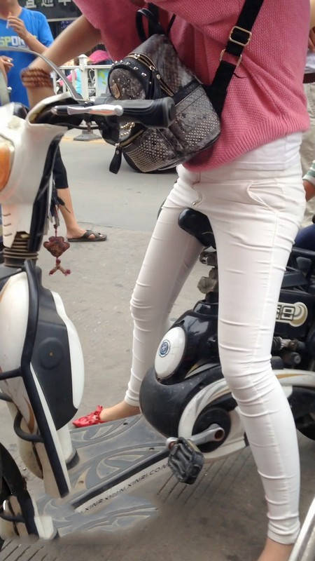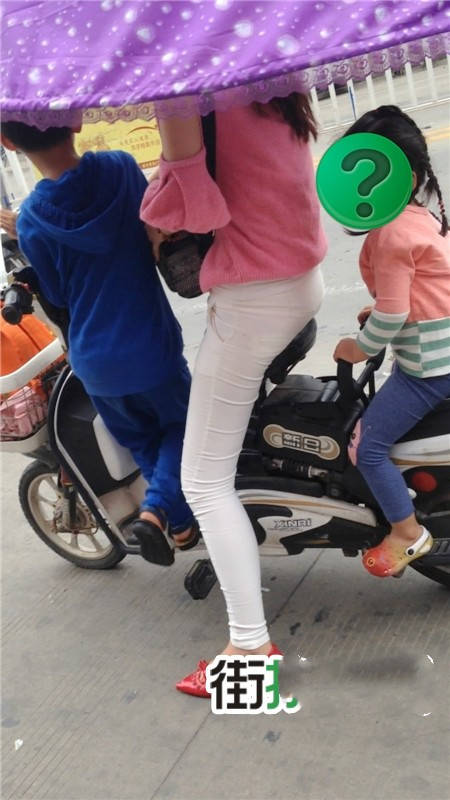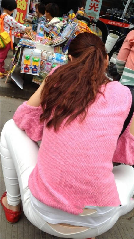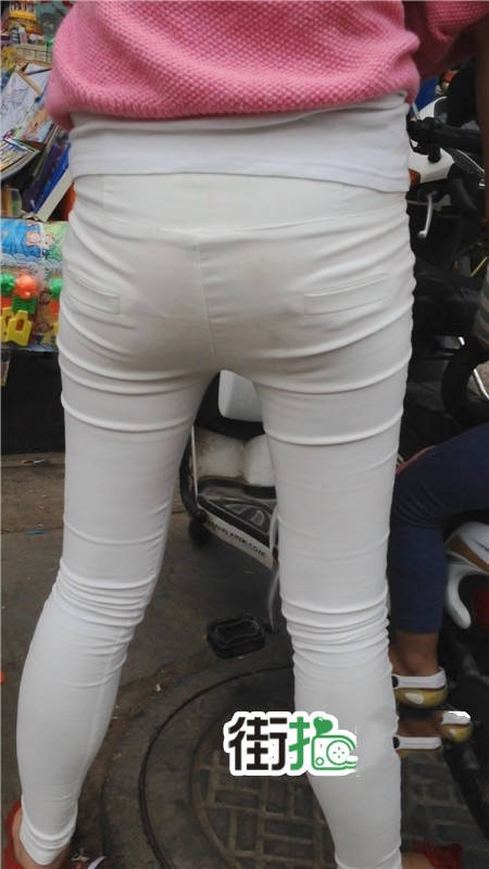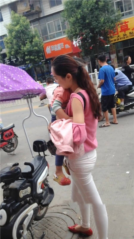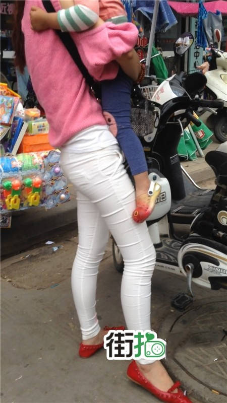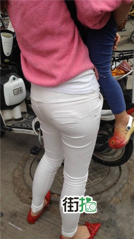 【编号1077】街拍白裤漂亮妈妈接宝宝回家 |