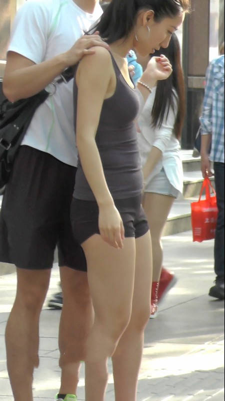 【编号1102】街拍紧身小短裤美女当街轻吻男友 |