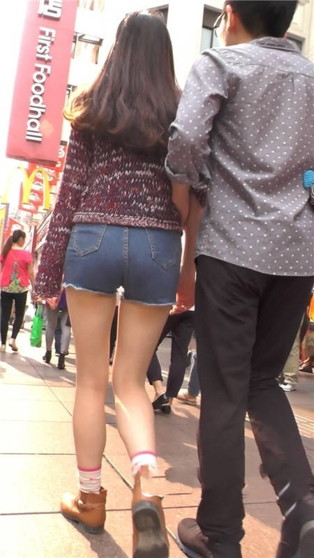 【编号1128】街拍紧身牛仔短裤小妹与男友逛街 |