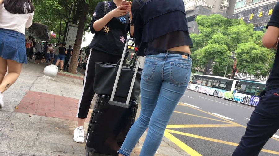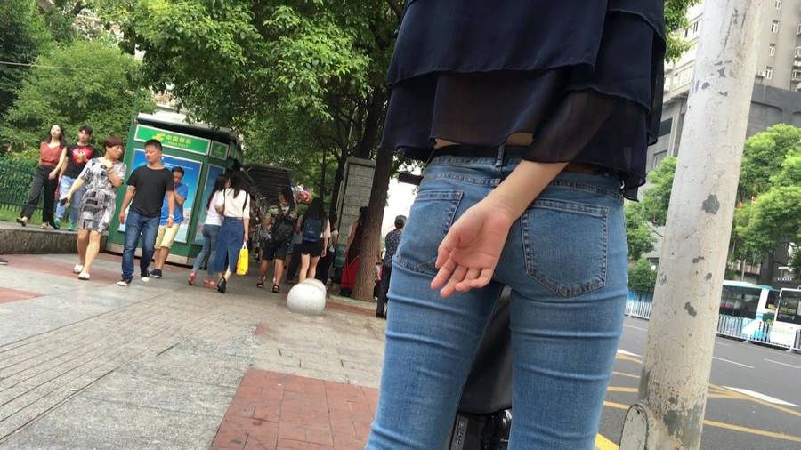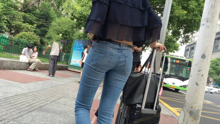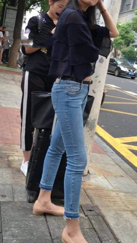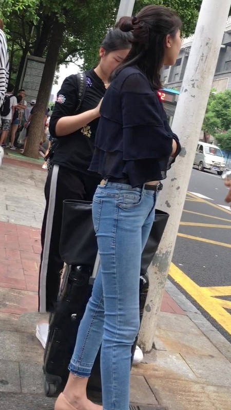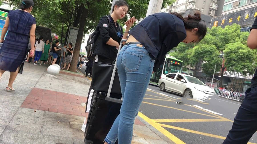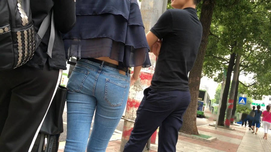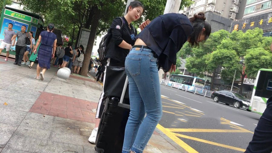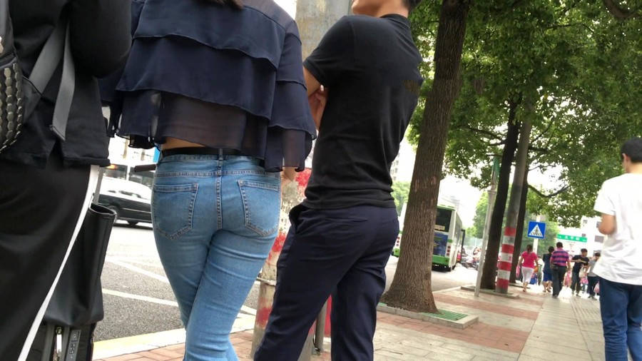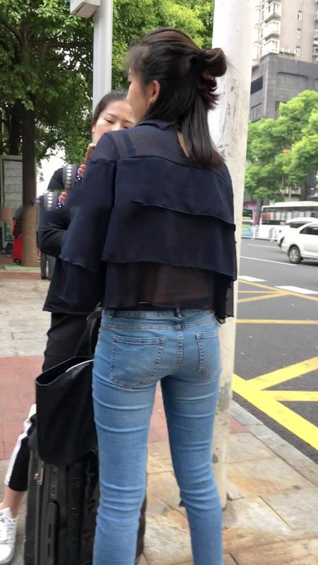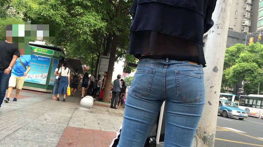 【编号1211】街拍公交站台的牛仔裤少女 |