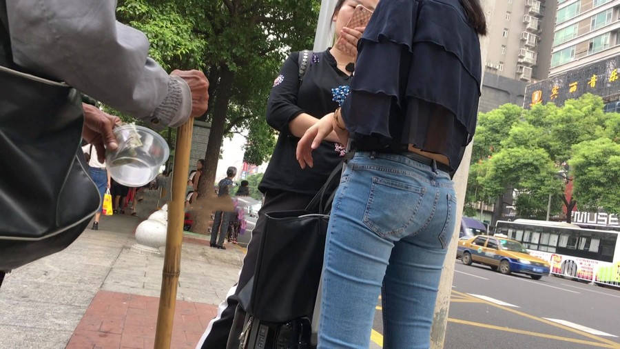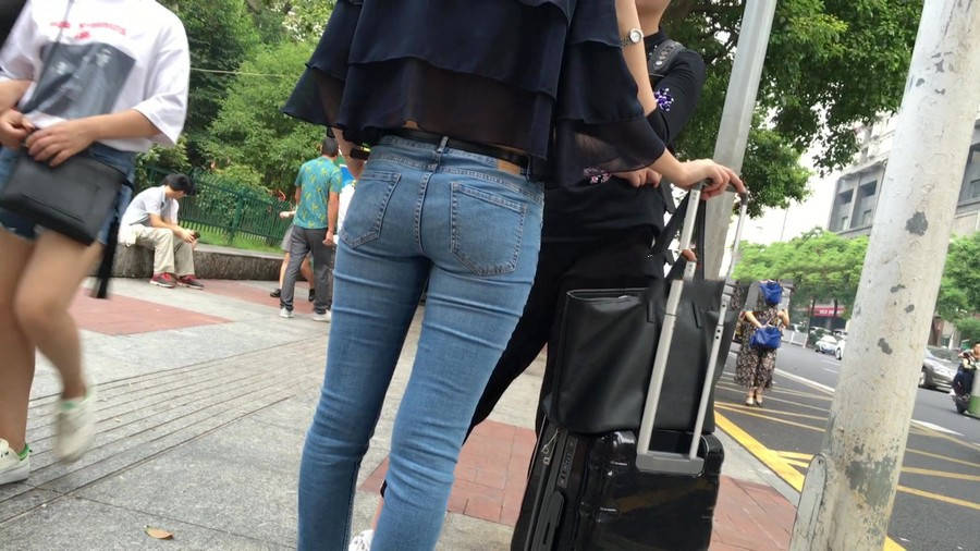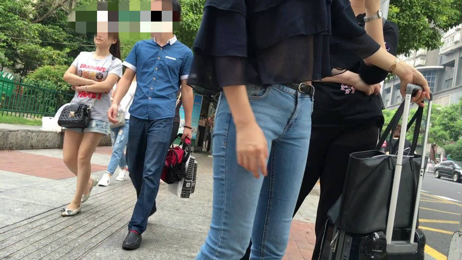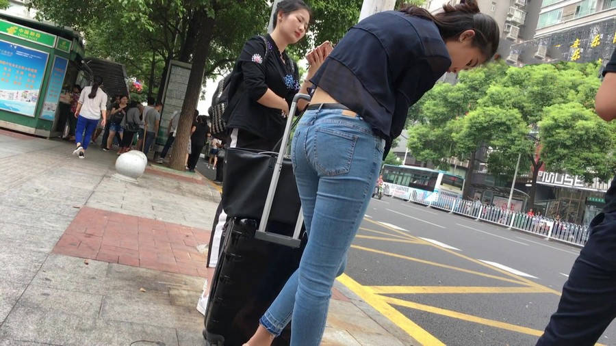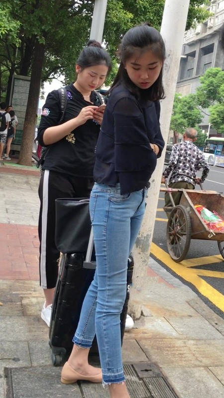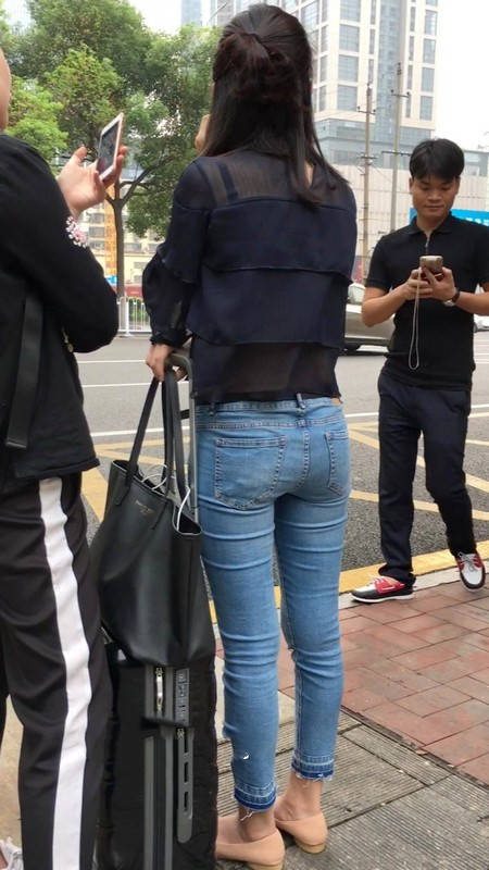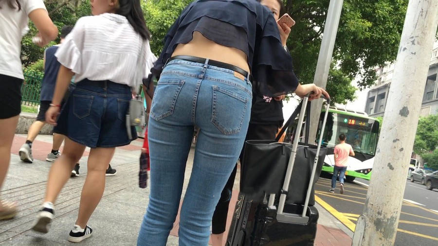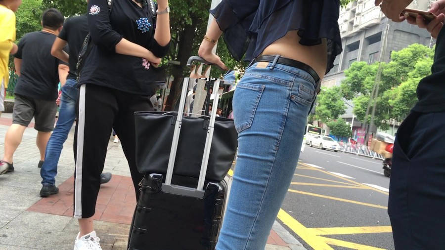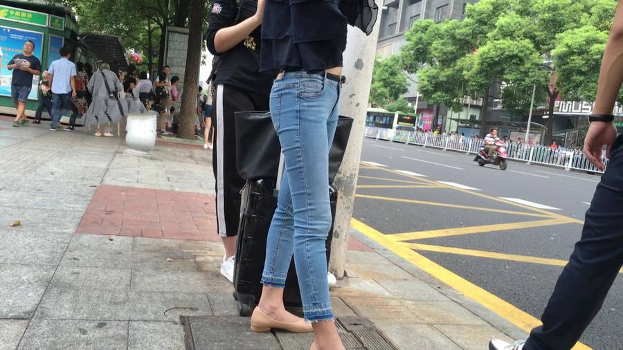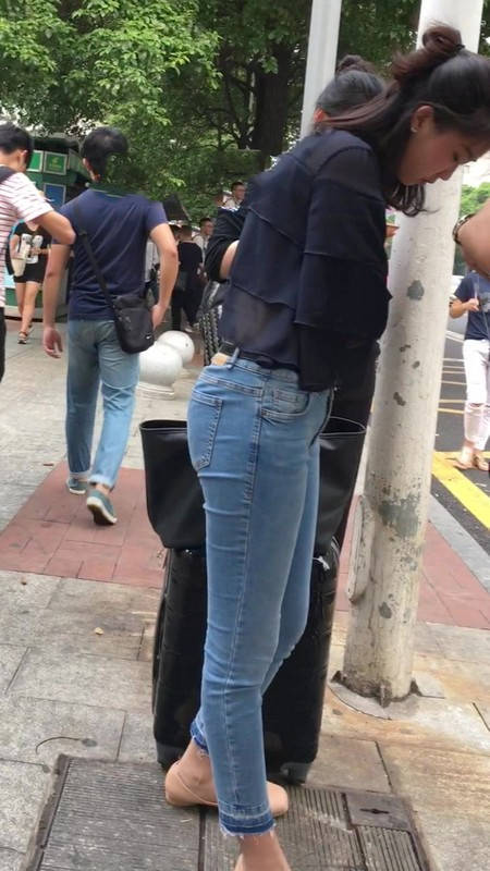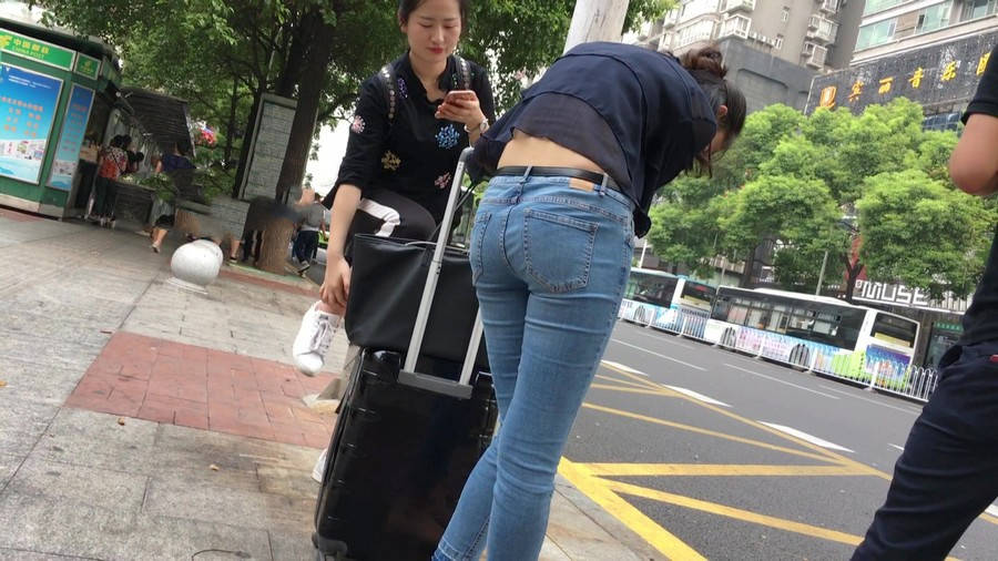 【编号1211】街拍公交站台的牛仔裤少女 |