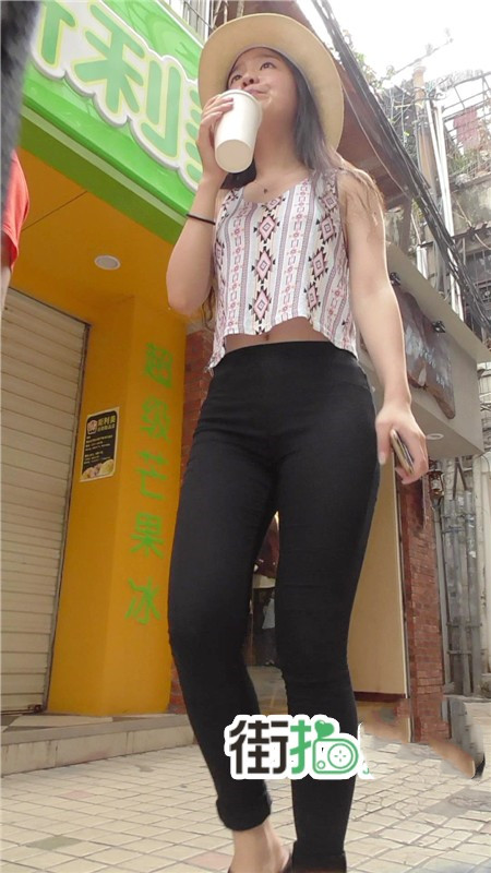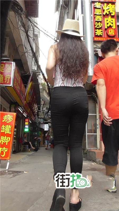 【编号729】街拍戴草帽的黑色紧身裤少妇 |