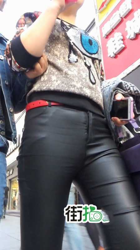 【编号753】街拍紧身黑皮裤少妇 |