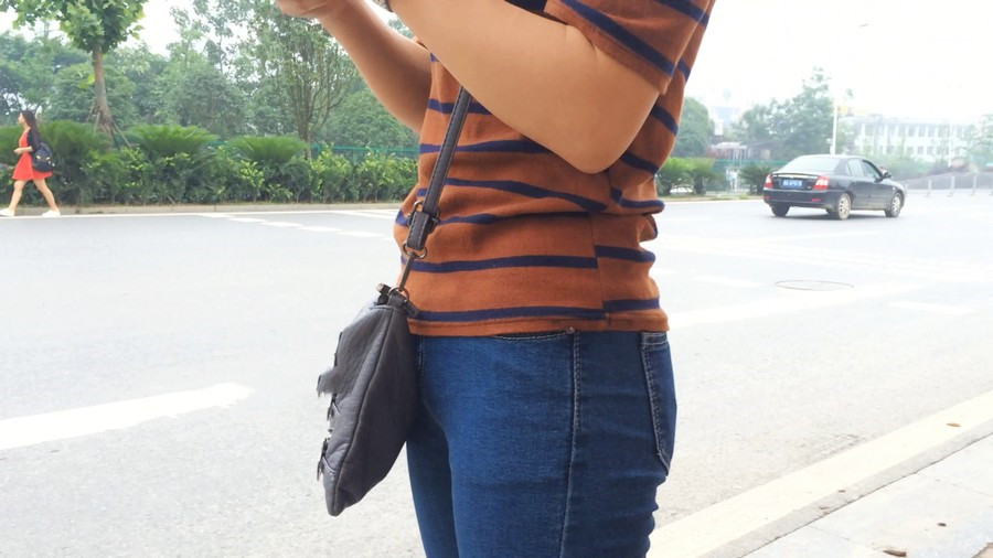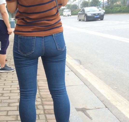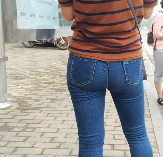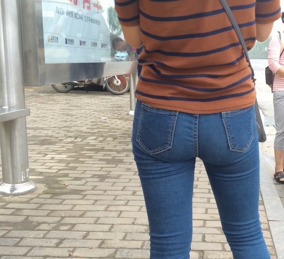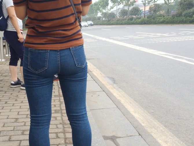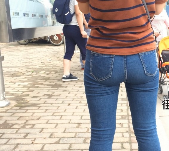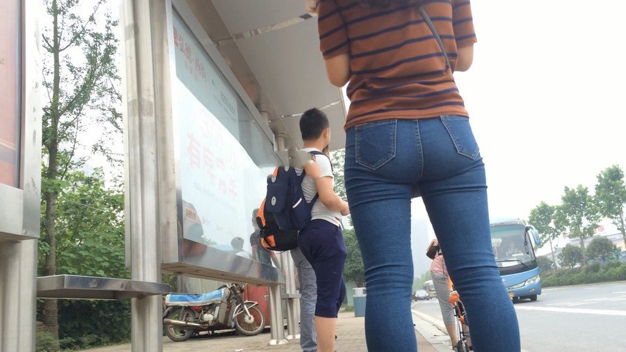 【编号860】街拍紧身蓝牛少妇等公交 |