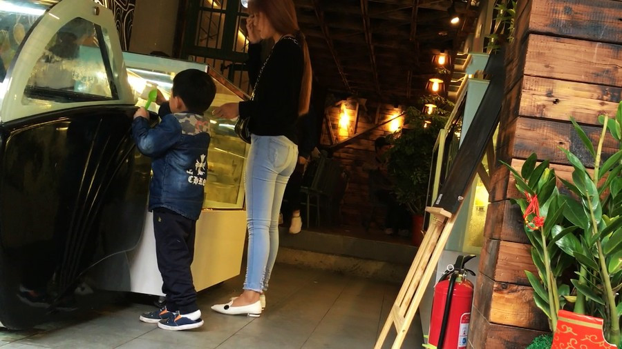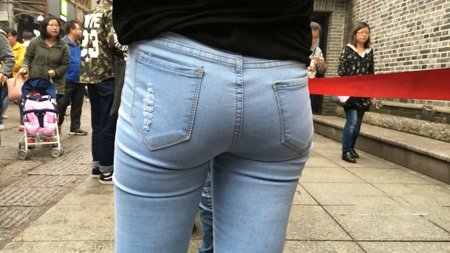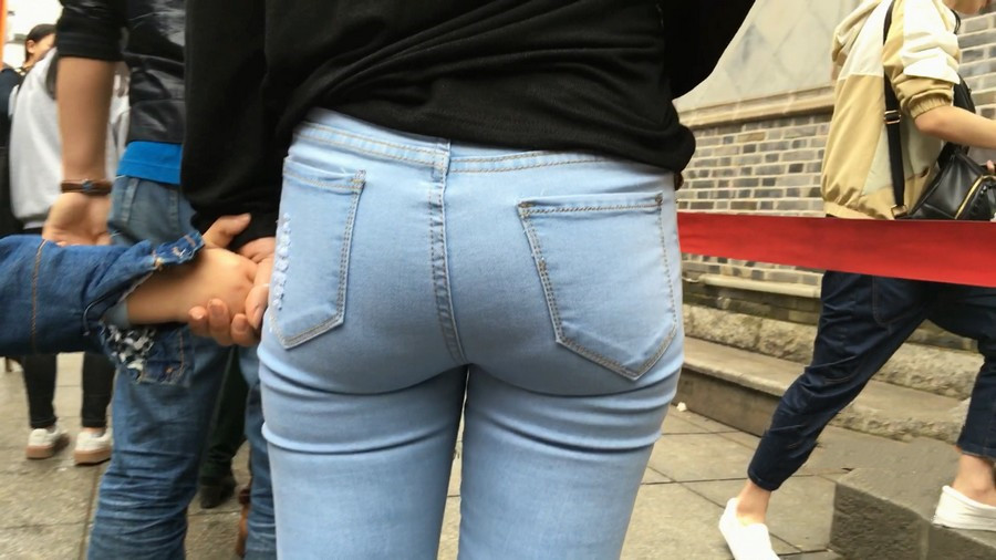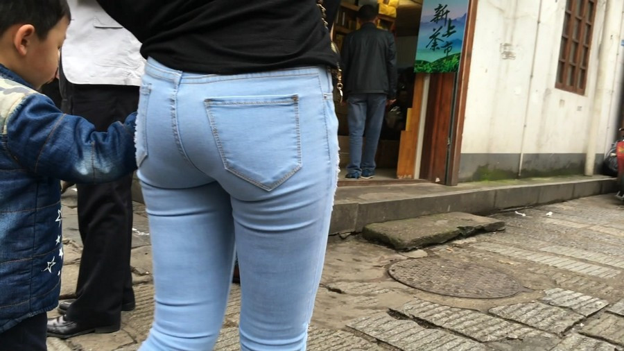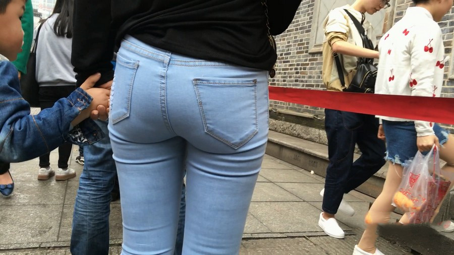 【编号910】街拍蓝牛少妇带小孩逛街 |