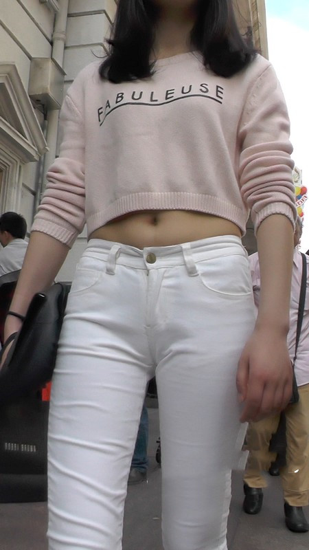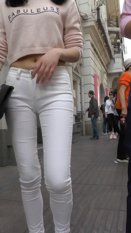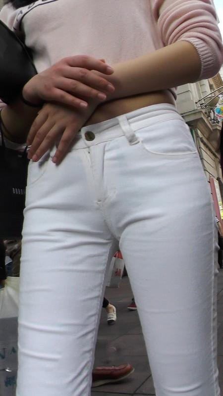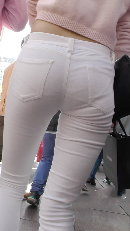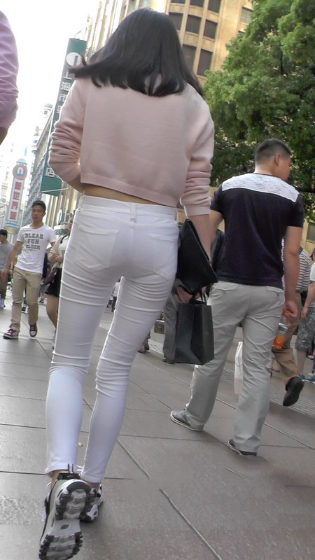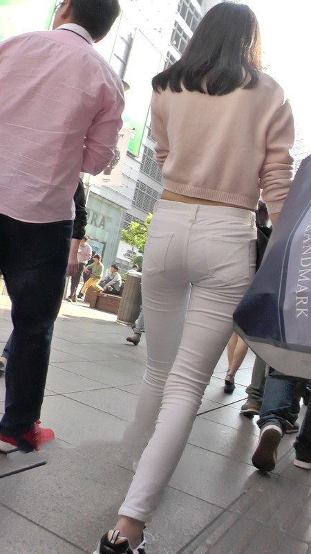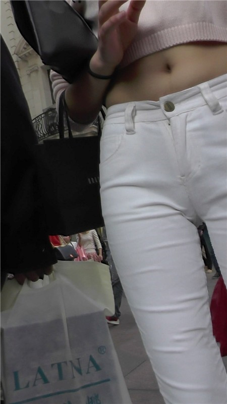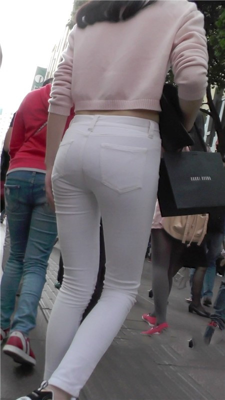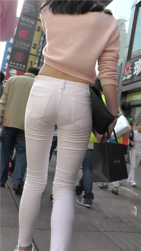 【编号1101】街拍白色低腰紧身裤翘臀MM |