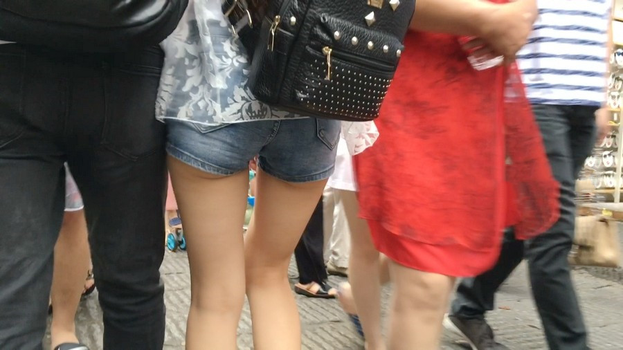 【编号1156】街拍超紧身牛仔热裤长腿学生妹 |