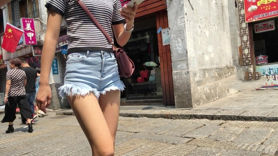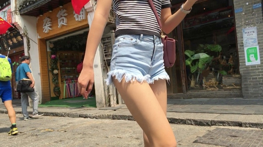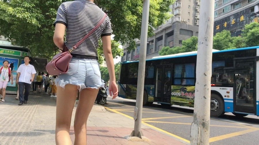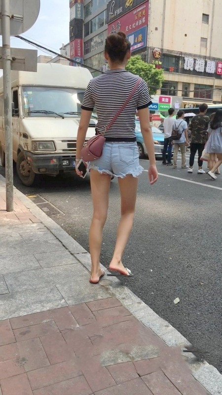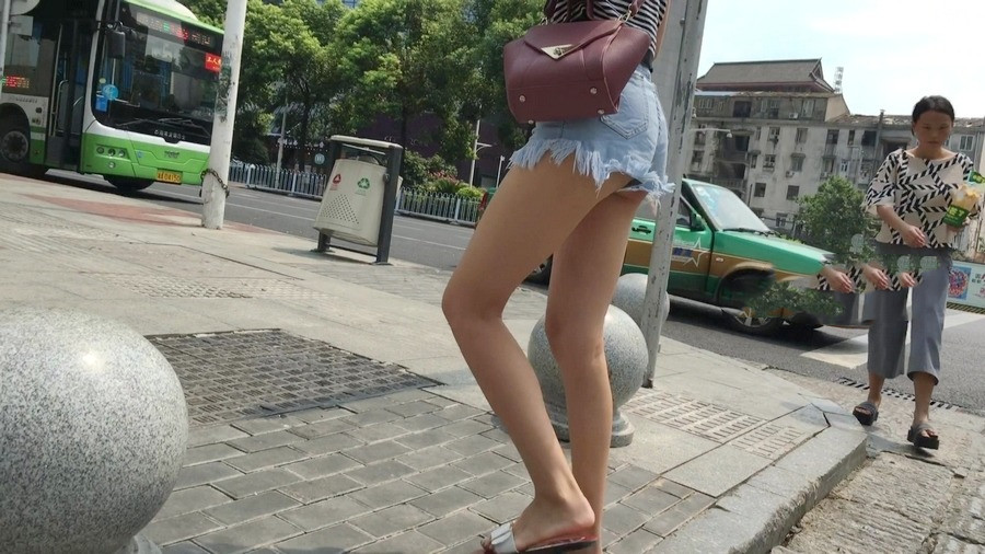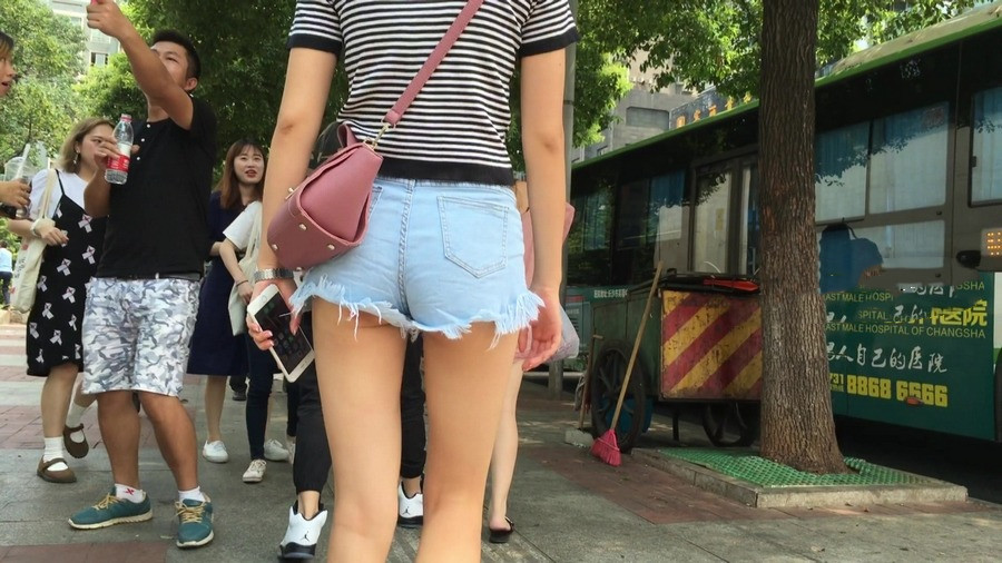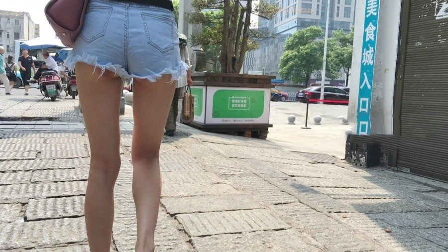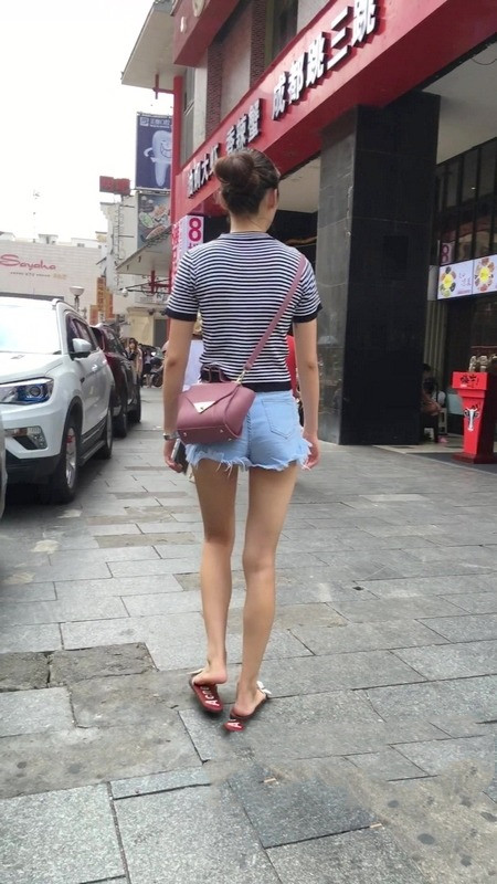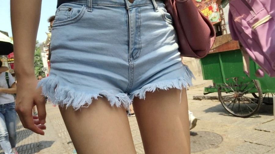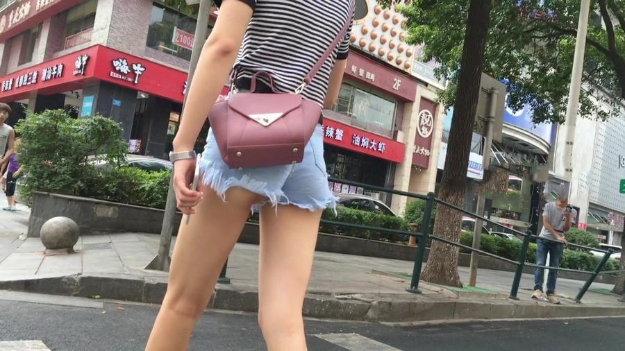 【编号1162】街拍紧身热裤长腿月牙少女 |