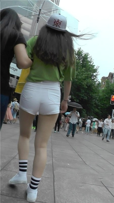 【编号1191】街拍白色紧身短裤大屁股月牙MM |