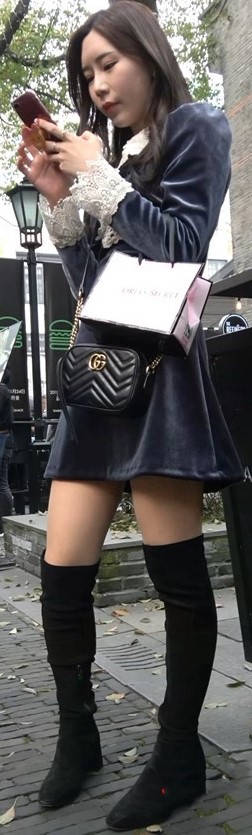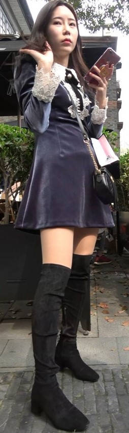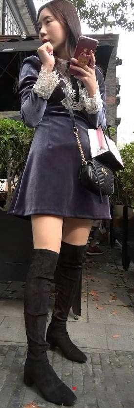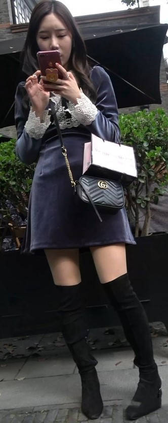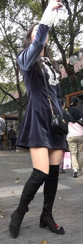 4K - 深色连衣裙街拍美腿姑娘一直在自拍 编号9436 |