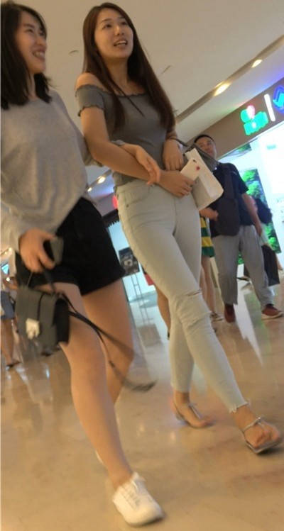 4K 仙女气质紧身裤一字肩街拍美女跟闺蜜逛商场 编号9449 |