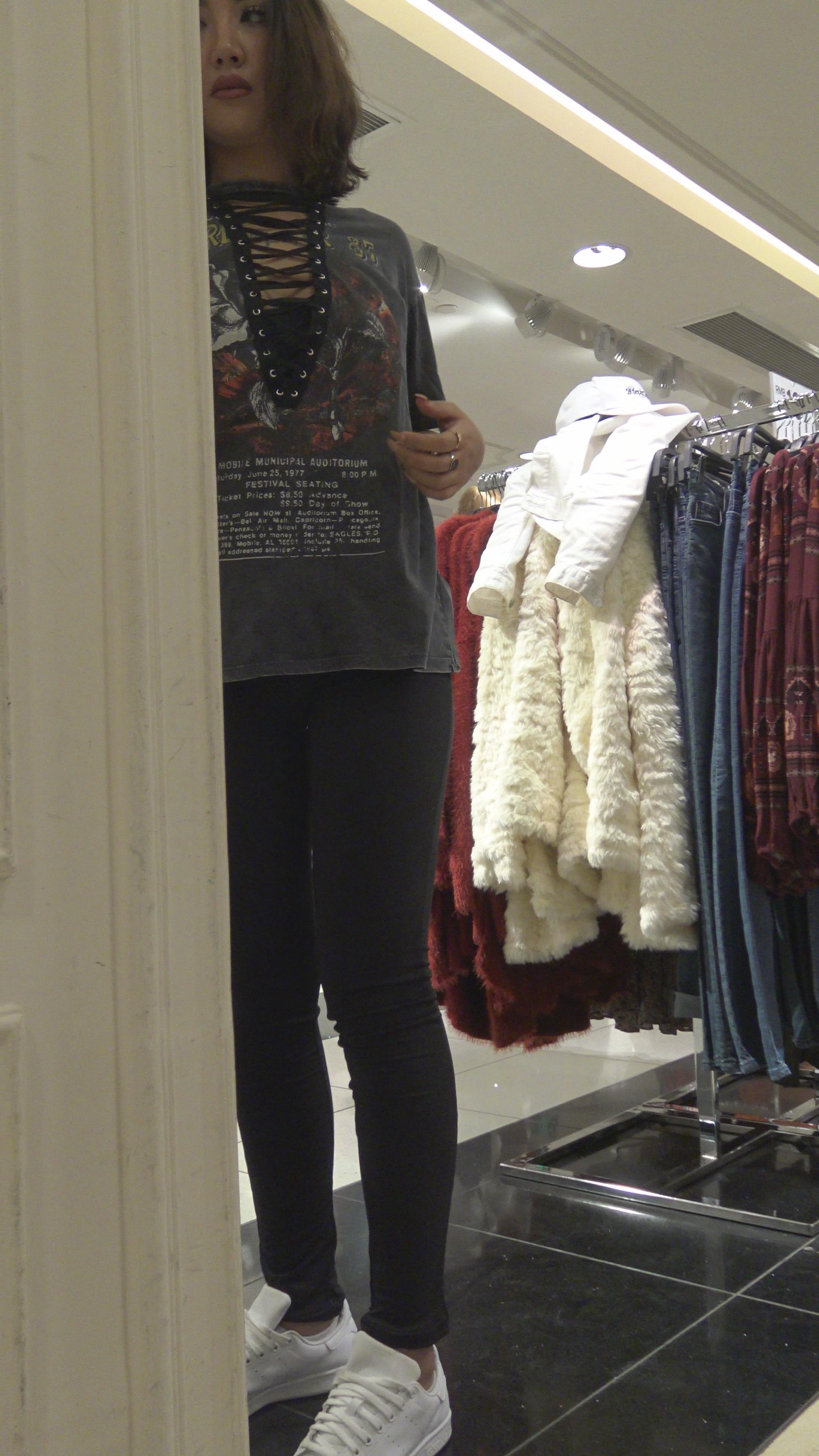 4K - 街拍黑色紧身裤美女试衣服 编号3189 |