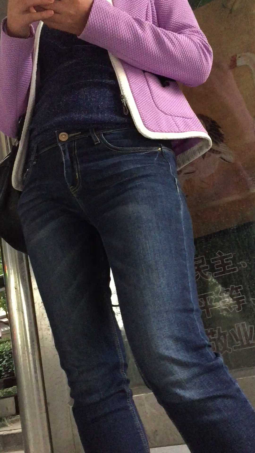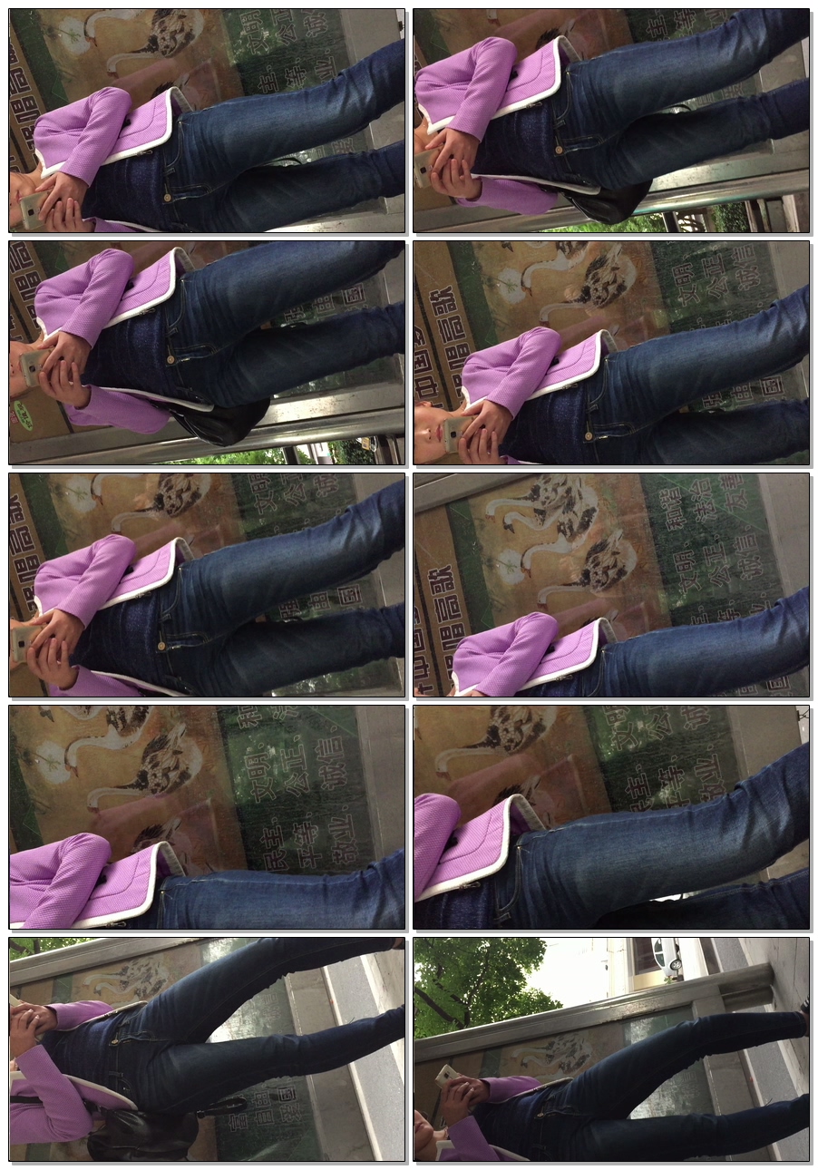 B1518公交站紧身牛仔三角区特写 |