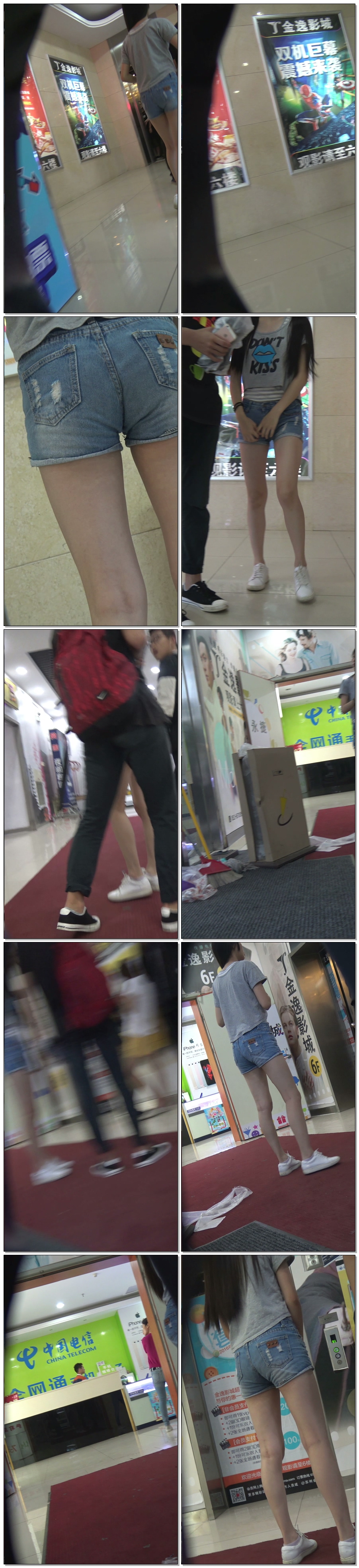 B1560商场紧身牛仔热裤长腿妹 |