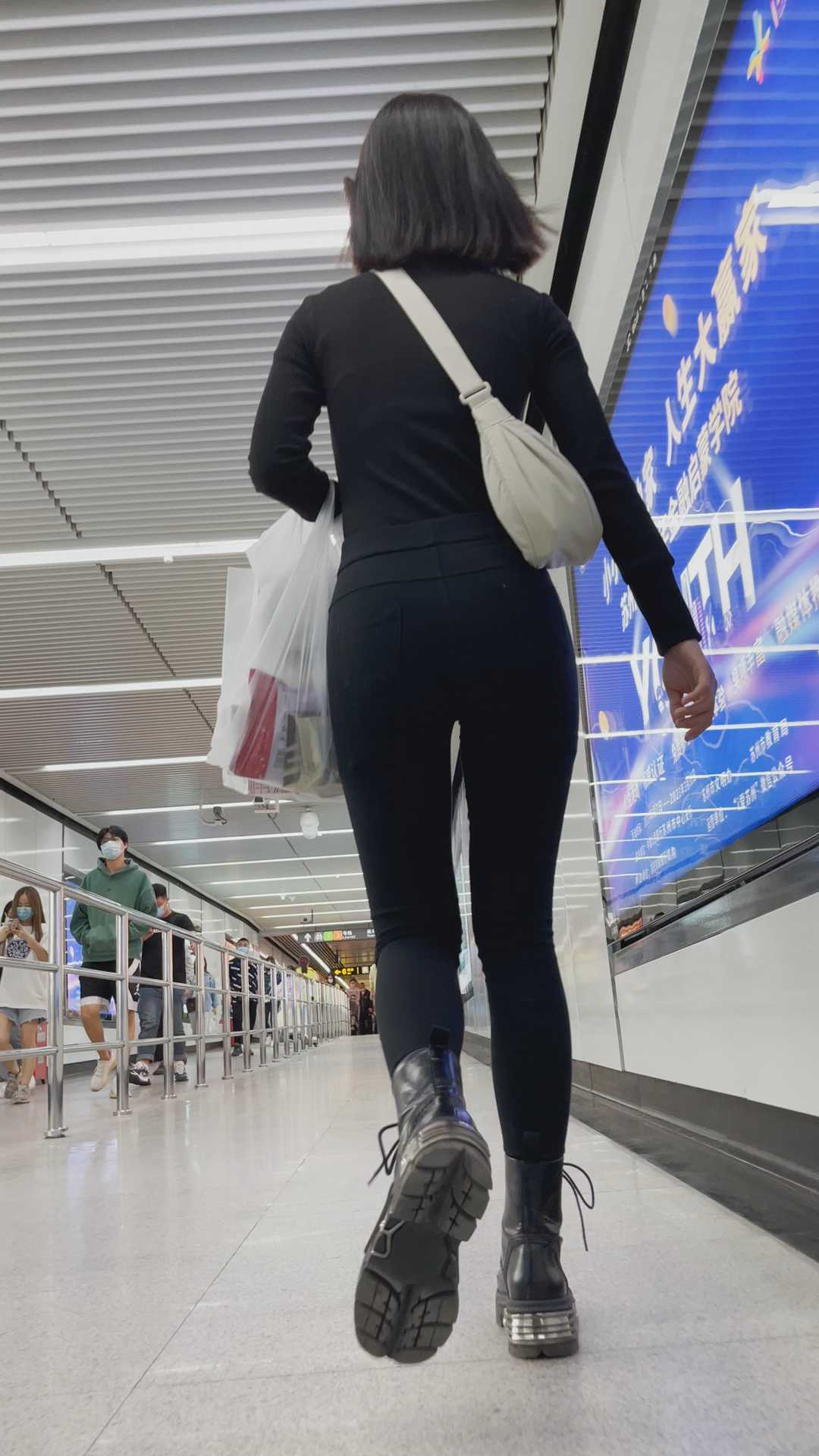 B1333街拍紧身黑裤小妹 |