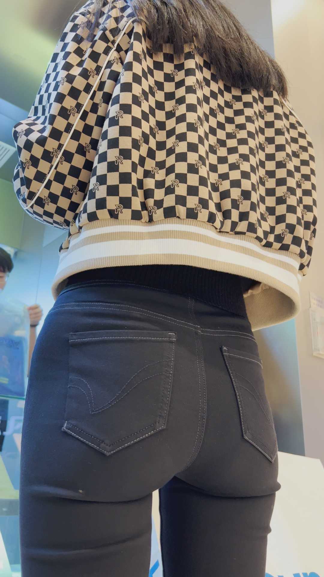 B41性感黑裤深沟牛仔美女 |