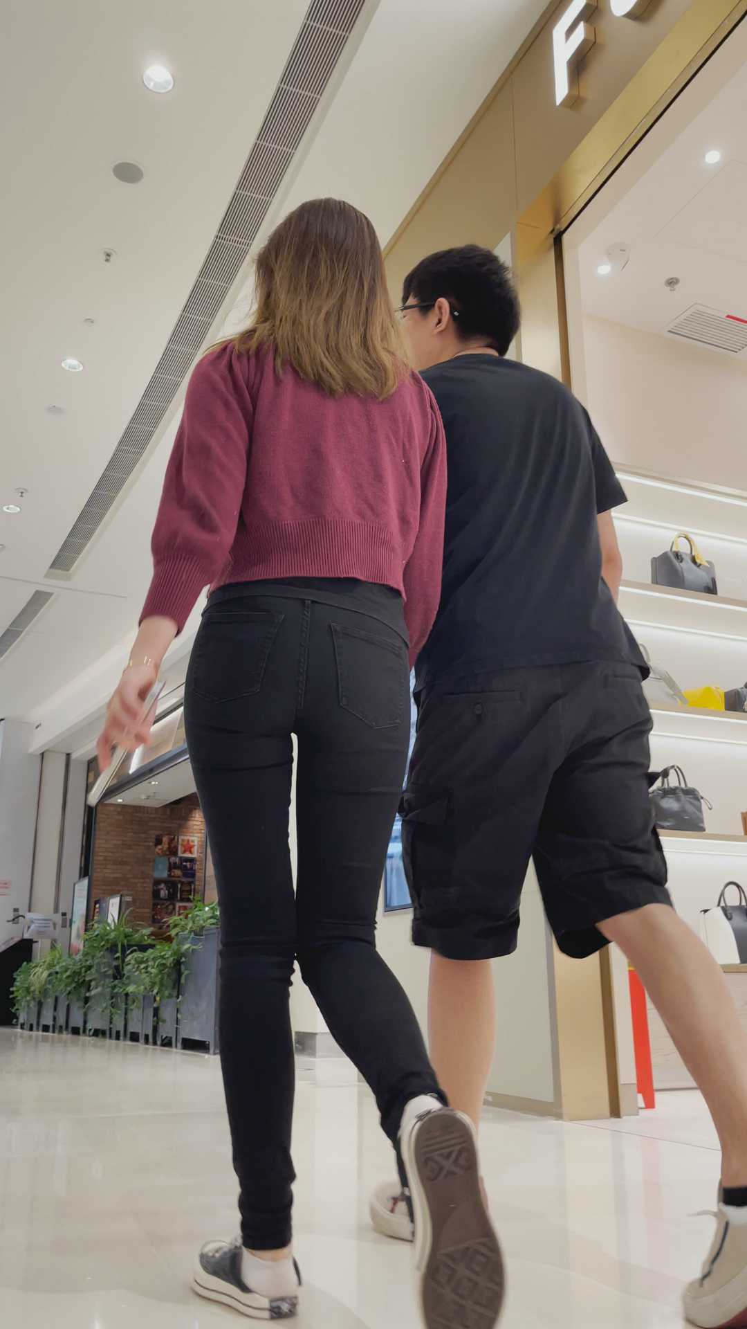 B563紧身打底黑裤紧臀美女 |