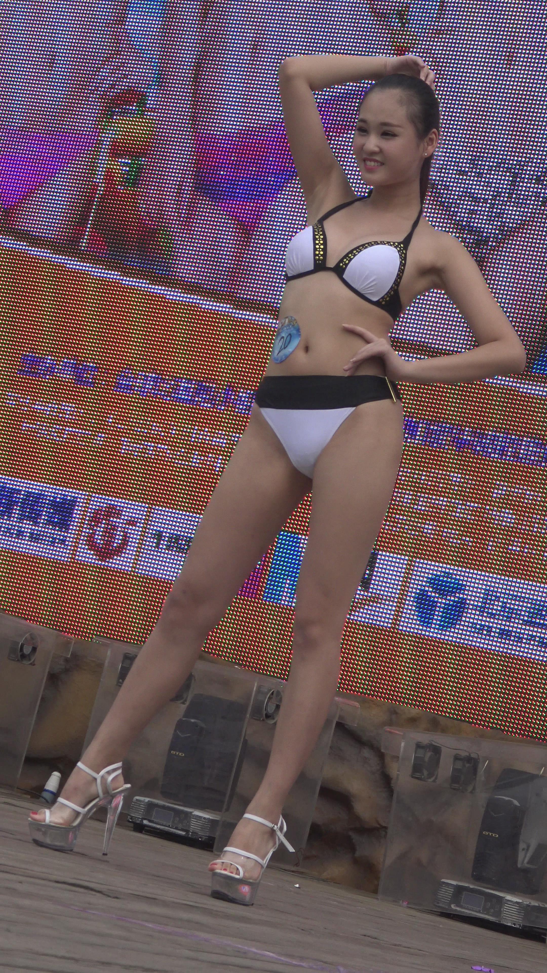 长相清纯可人的黑白比基尼泳装模特,拥有一双修长的白腿 编号1639 |