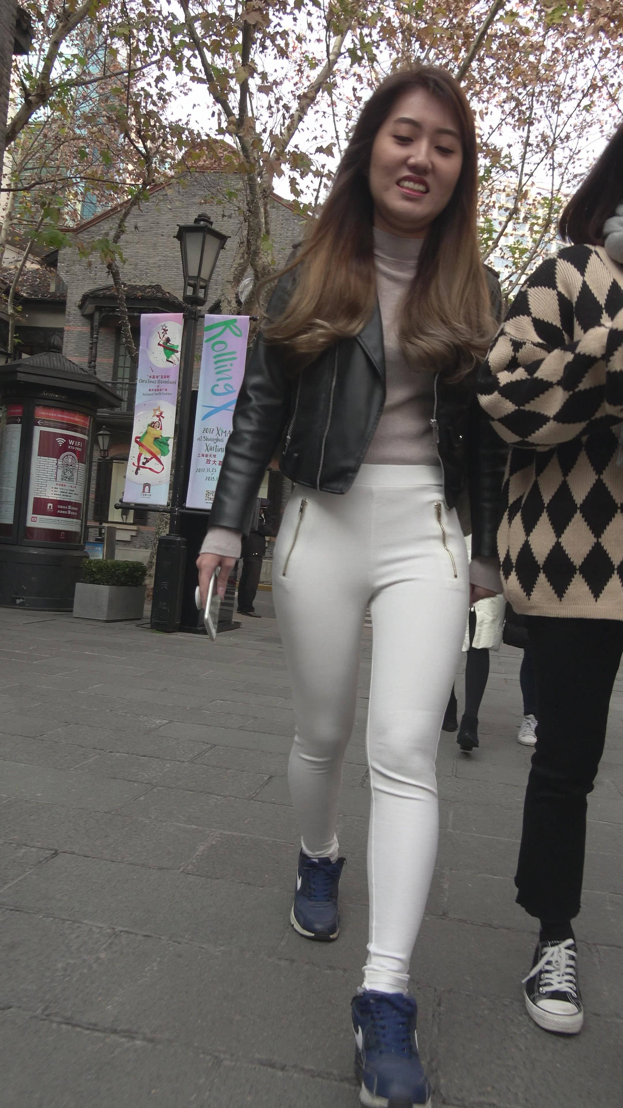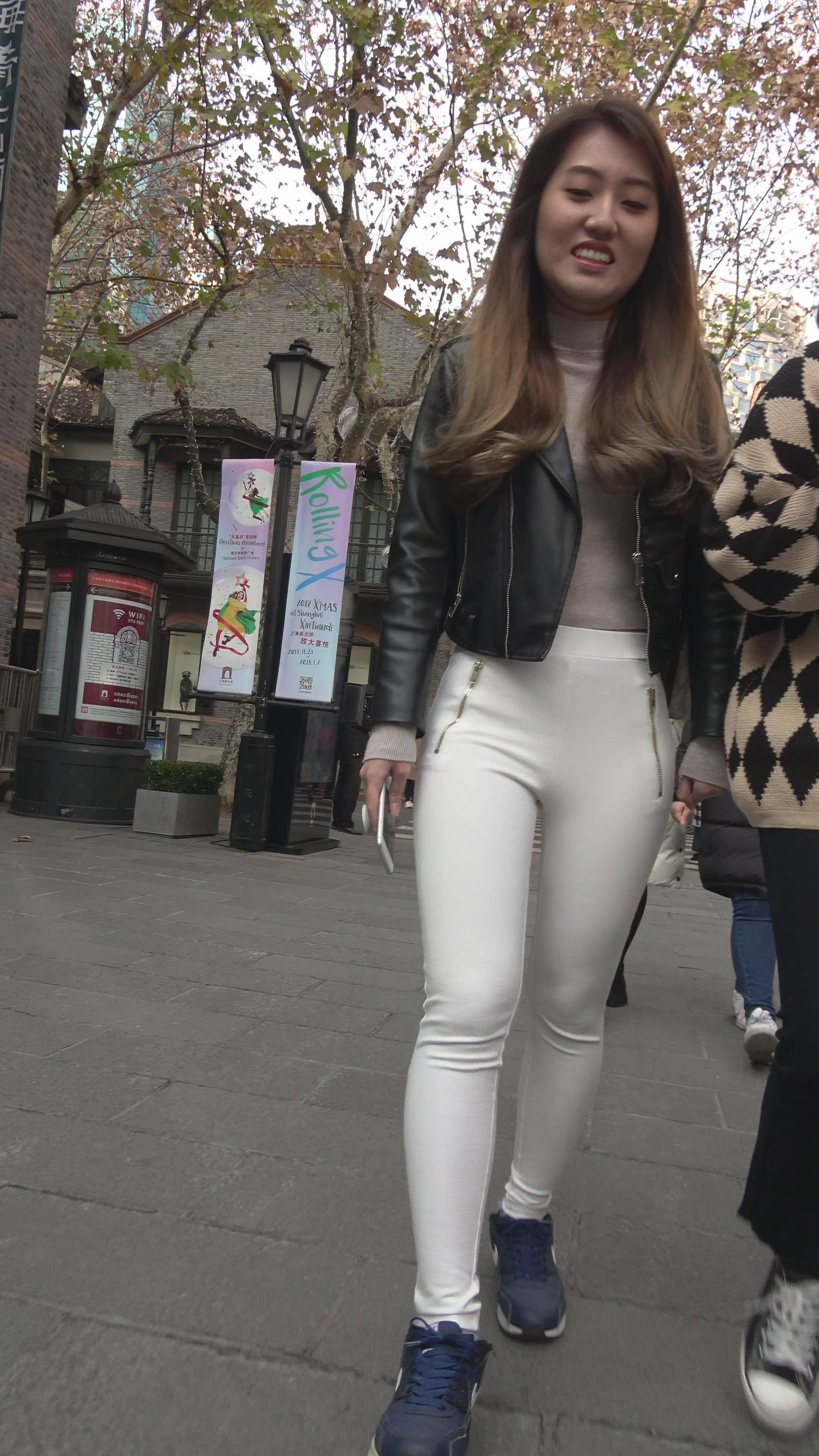 4K - 超紧身白裤肉臀街拍美女 1 编号7486 |