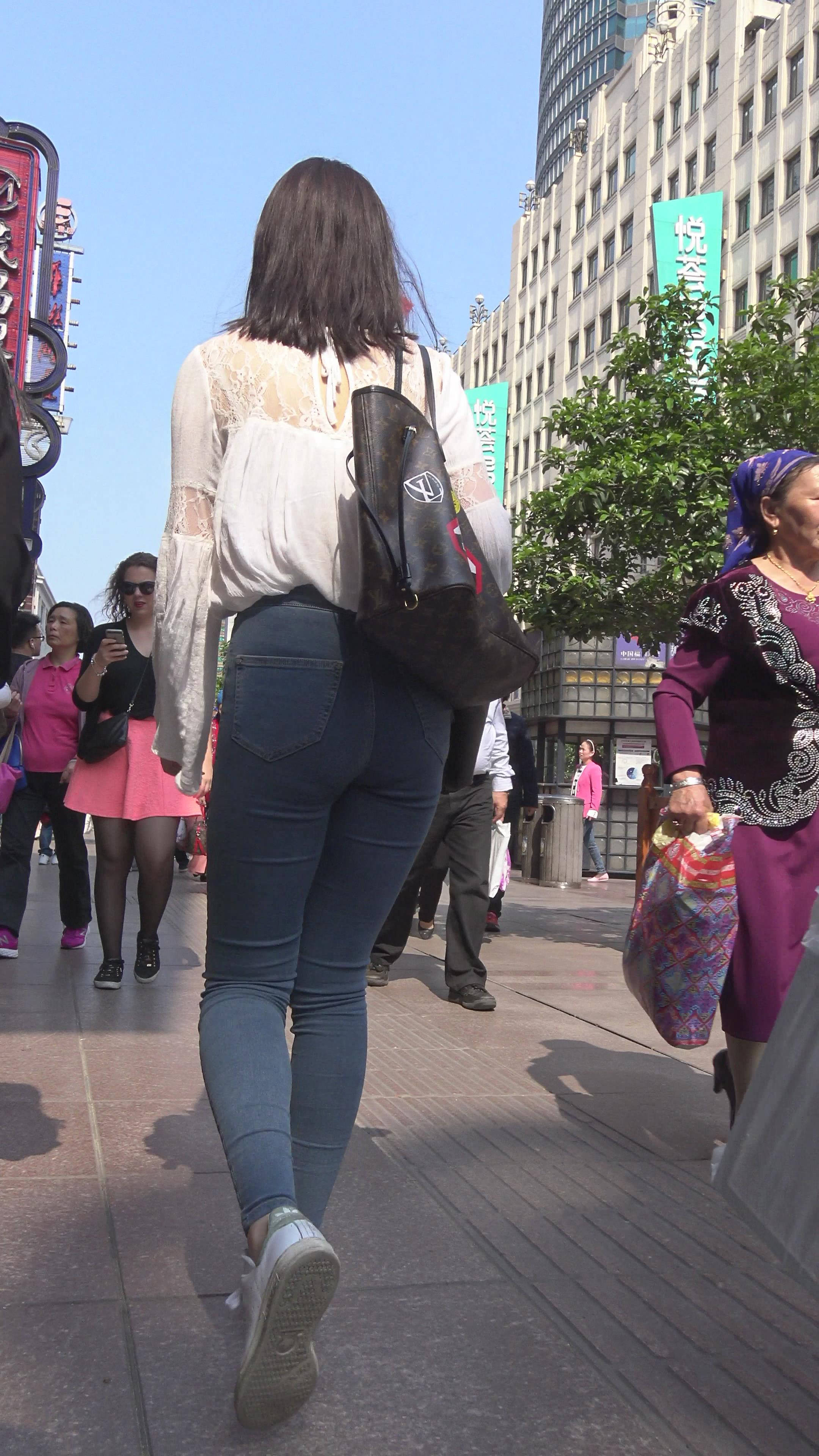4K - 街拍紧身蓝色牛仔裤性感美臀 编号7849 |