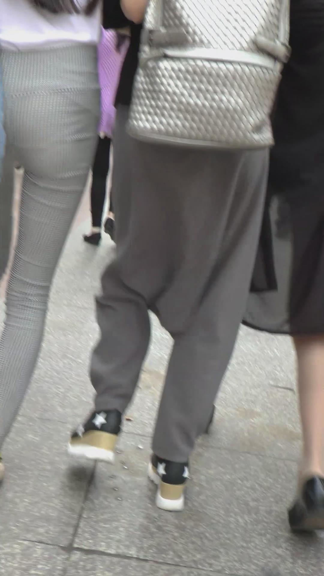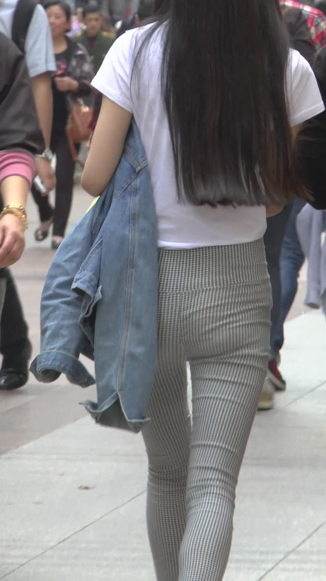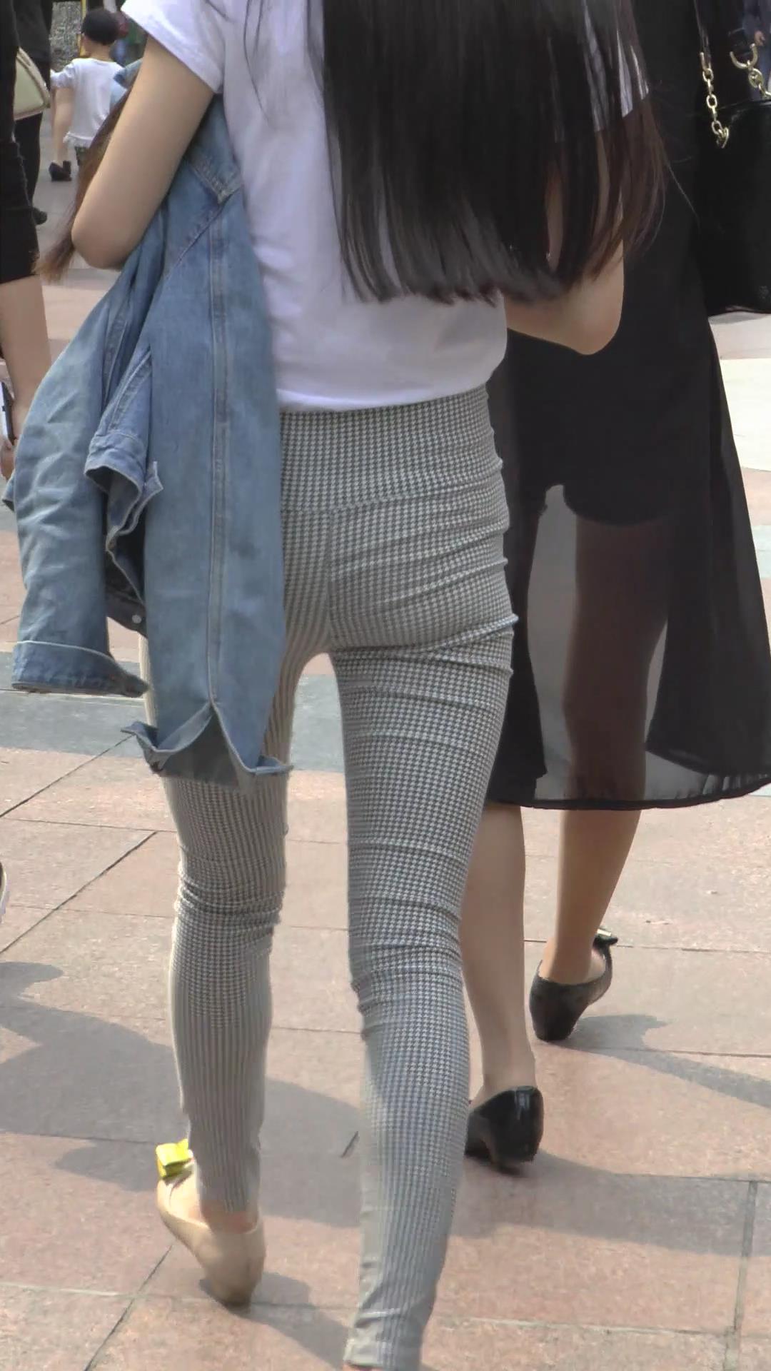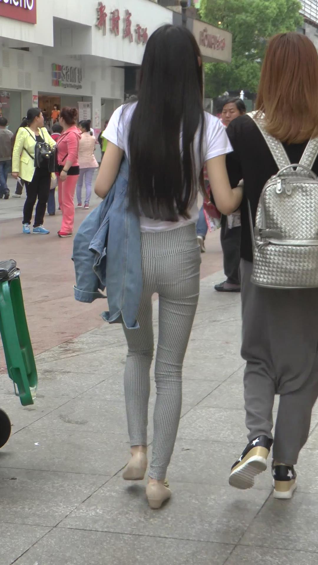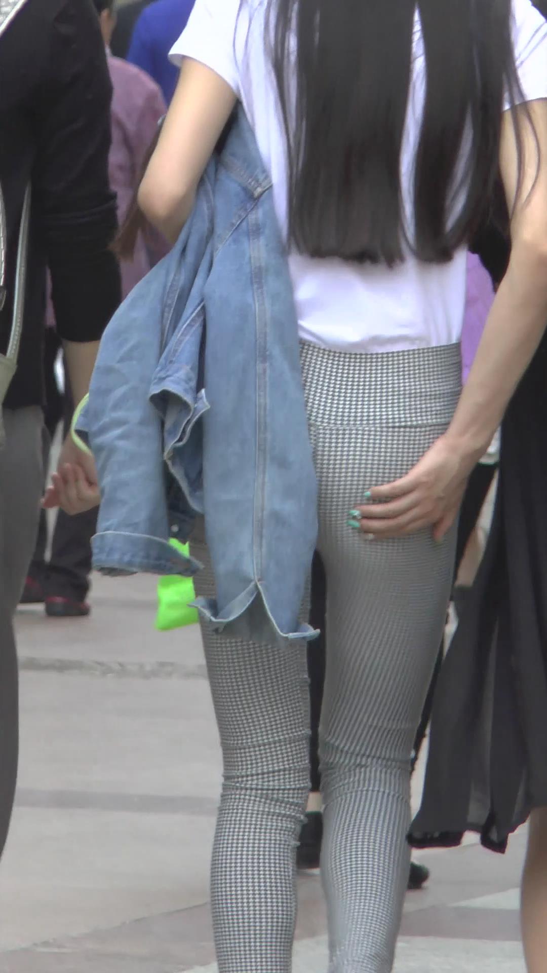 街拍格子紧身裤白T恤美臀美女 编号6072 |