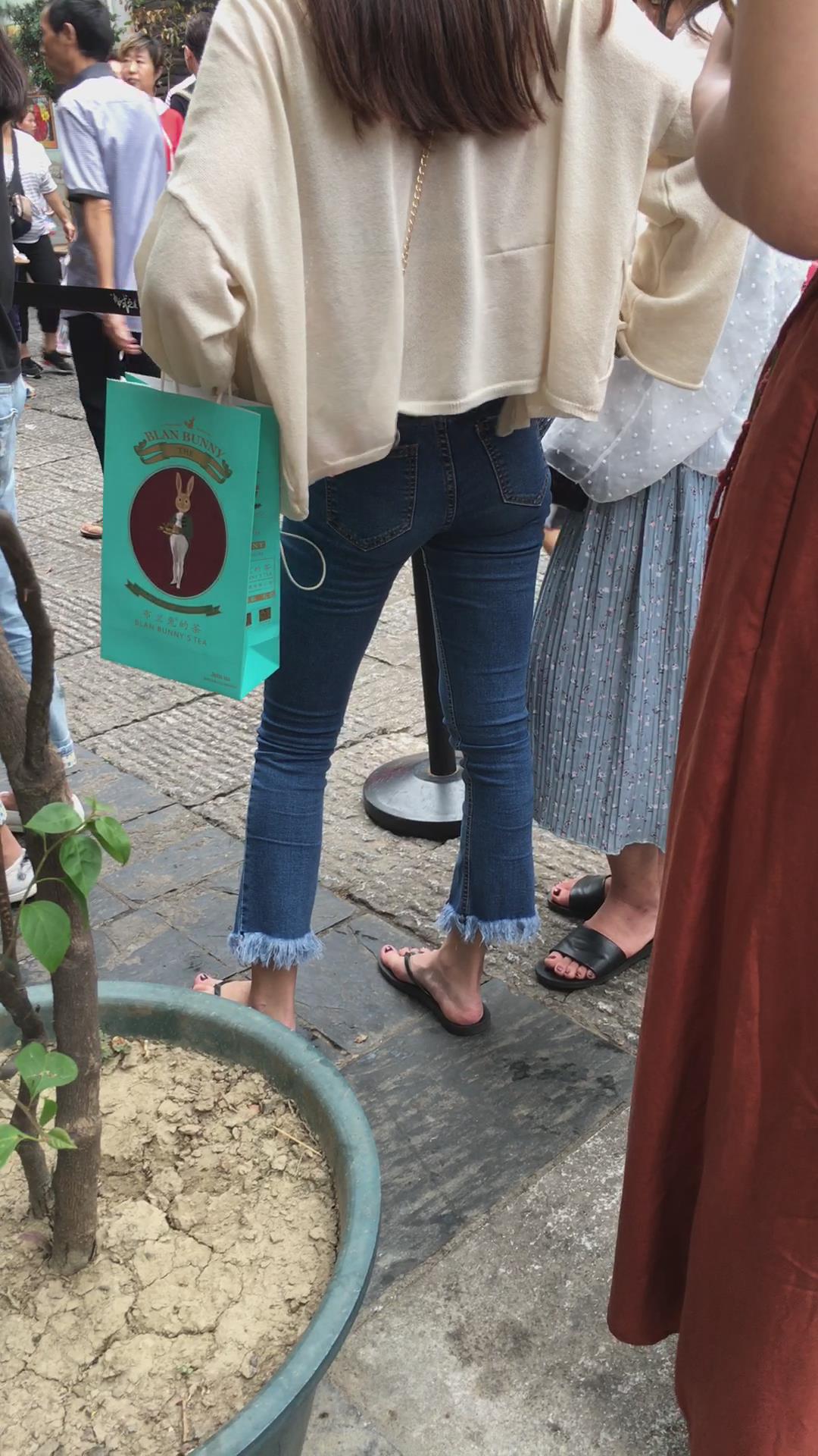 街拍清纯紧身蓝色牛仔裤可人娇小美女 编号6083 |