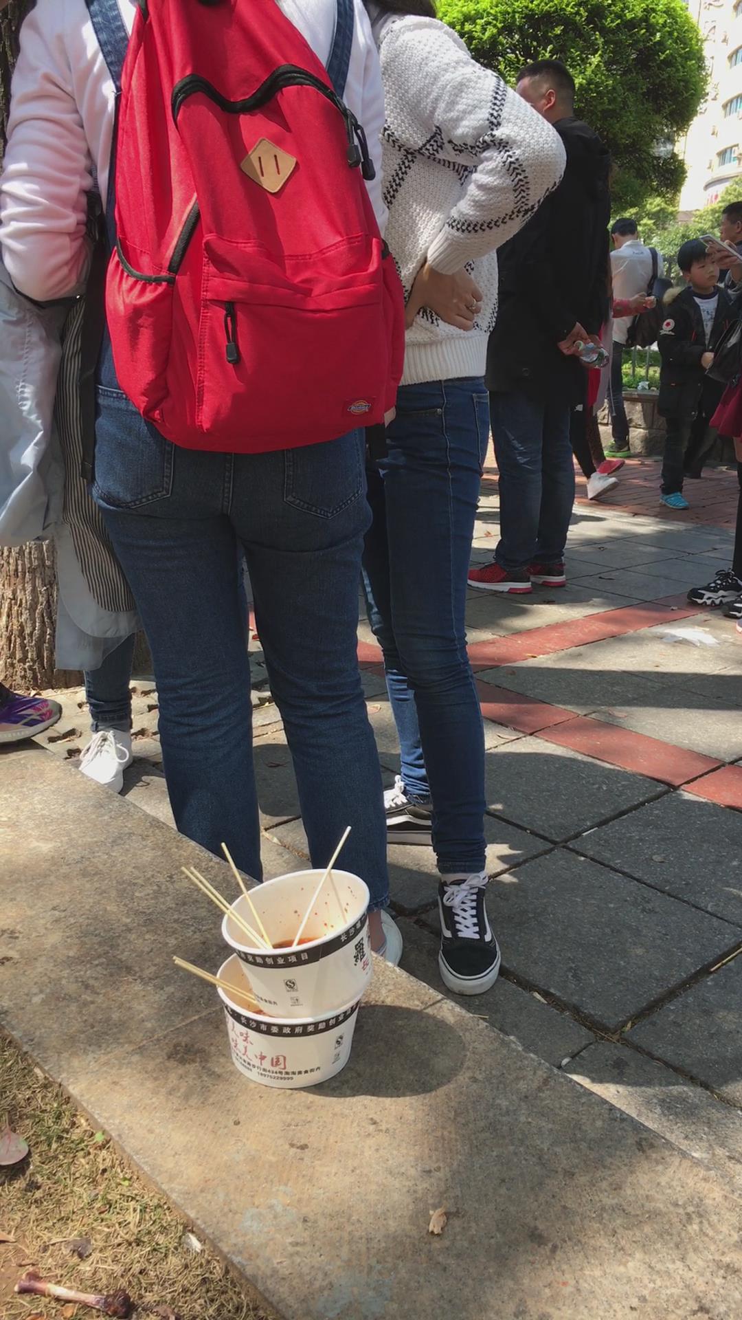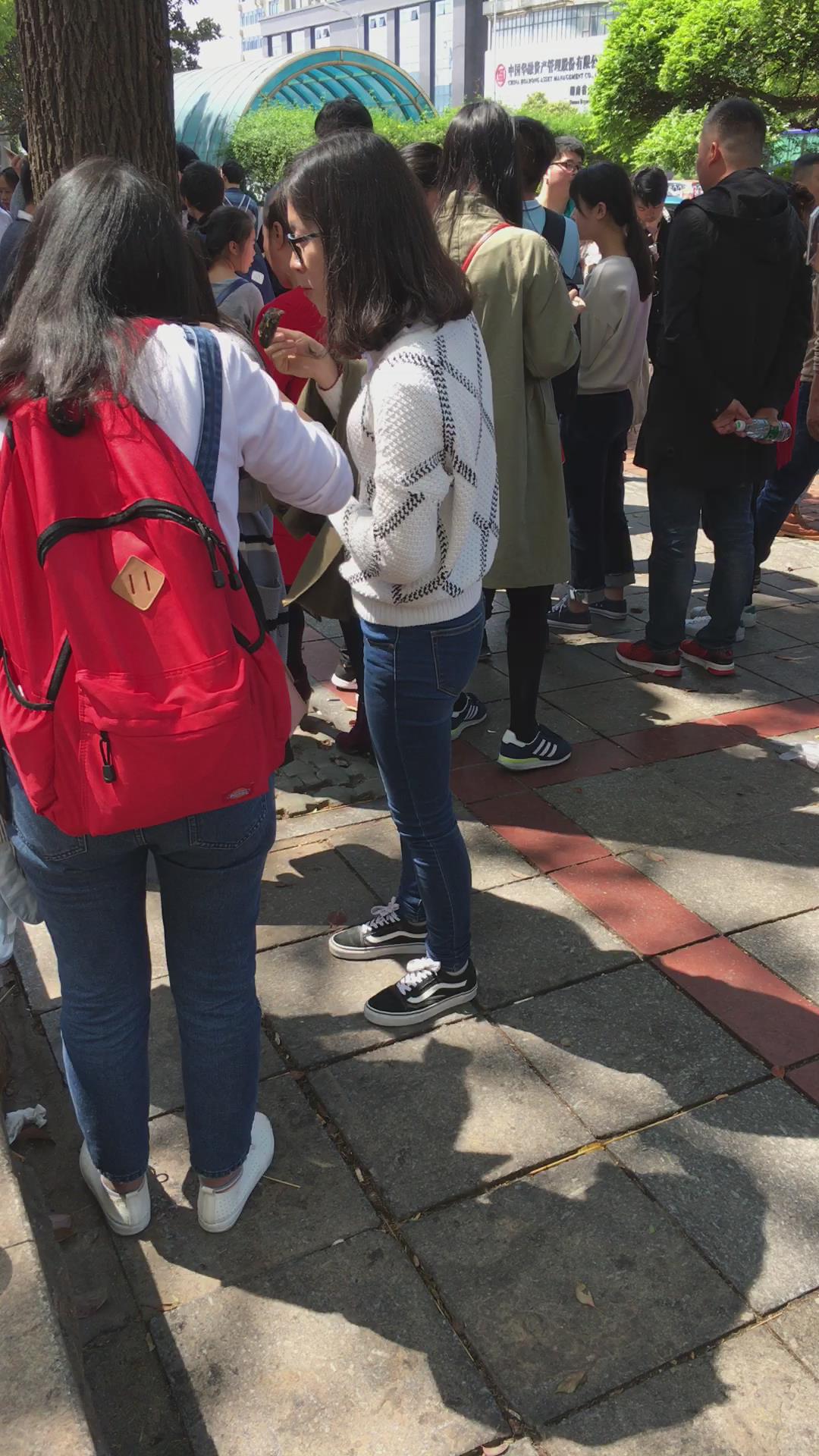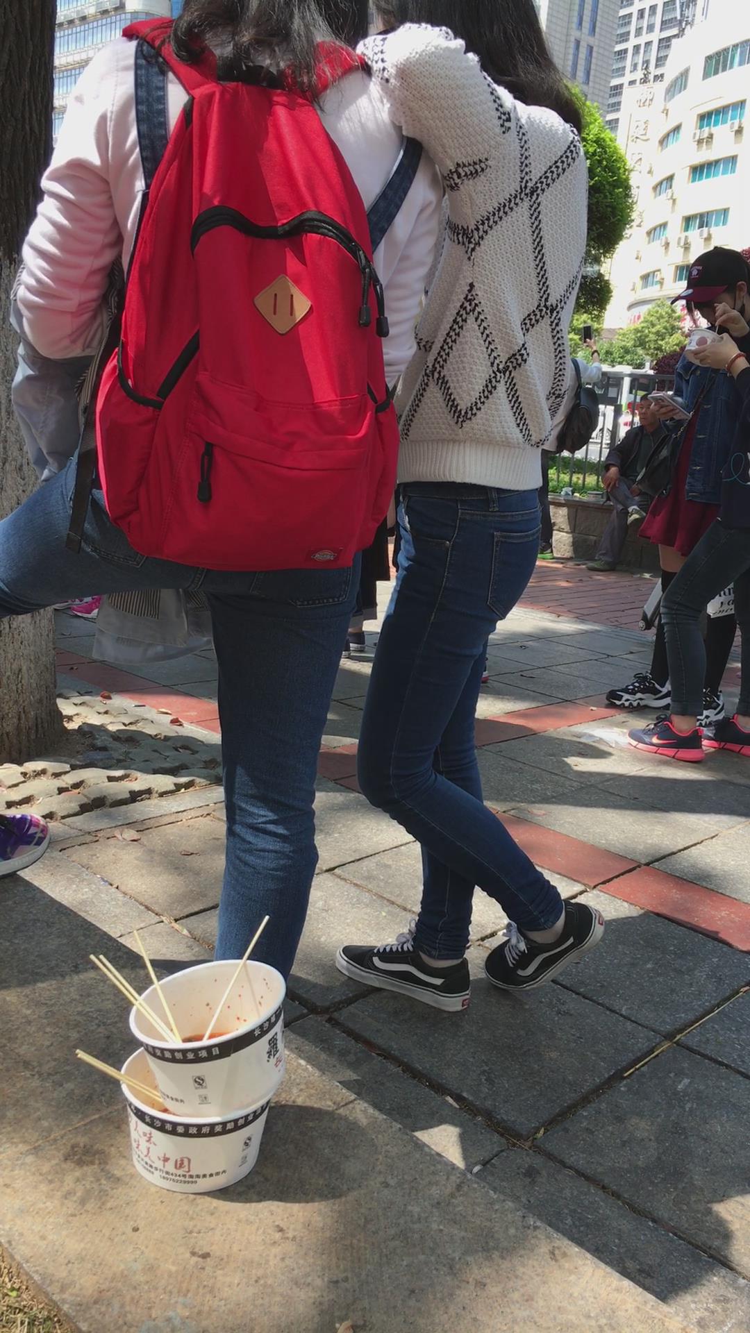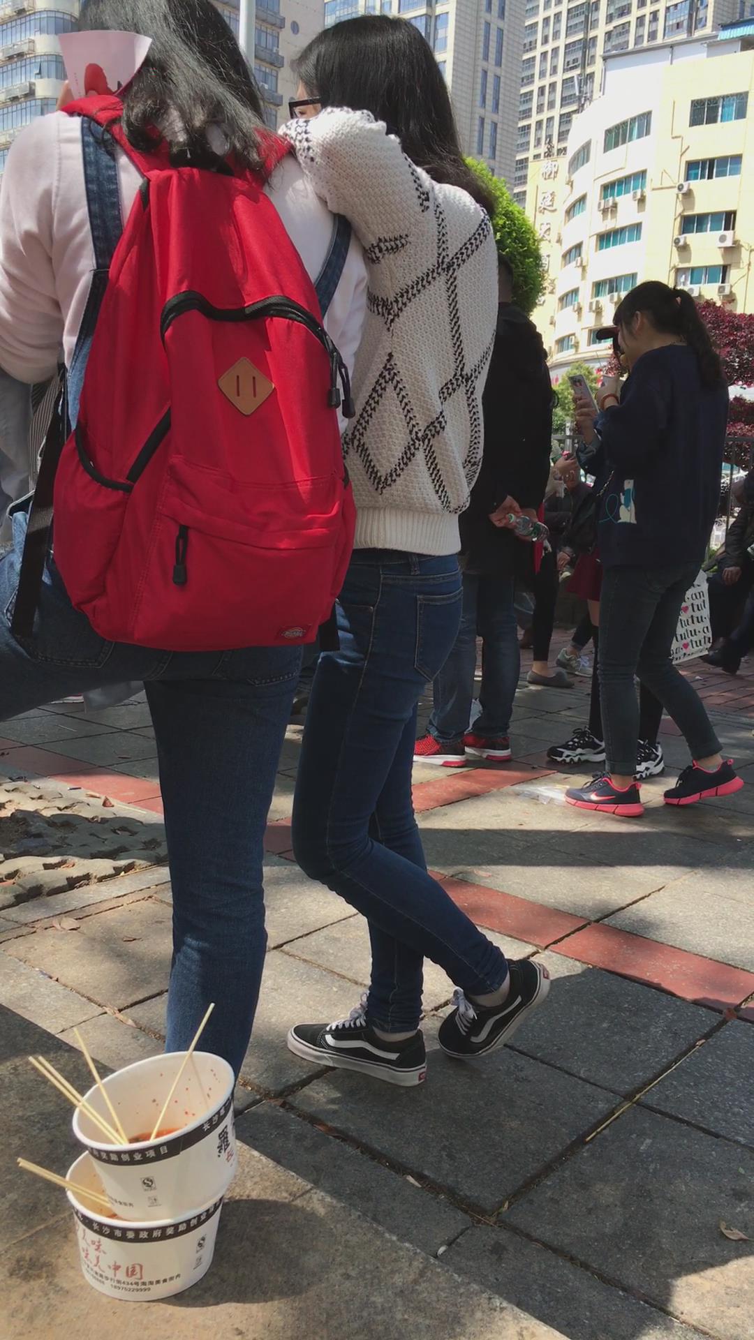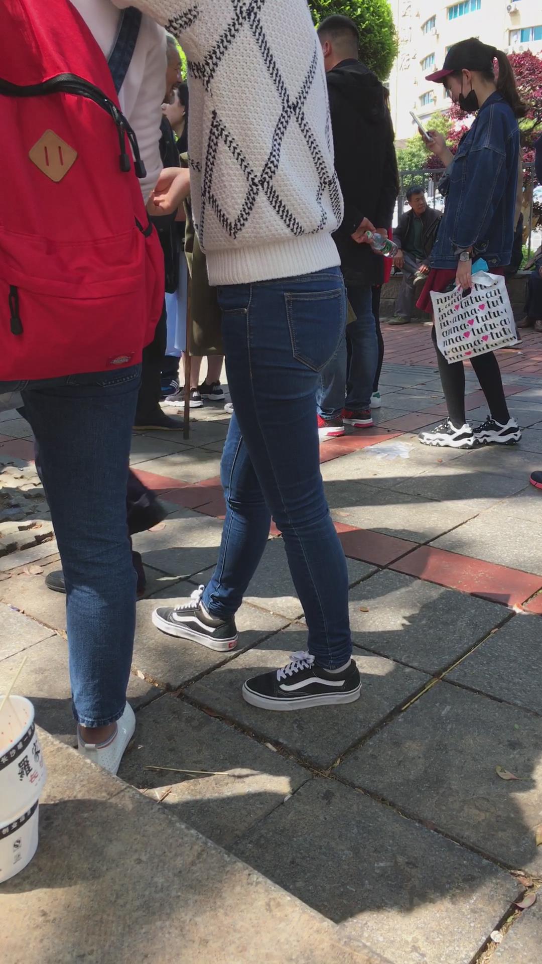 街拍白毛衣紧身蓝色牛仔裤学生妹 编号5346 |