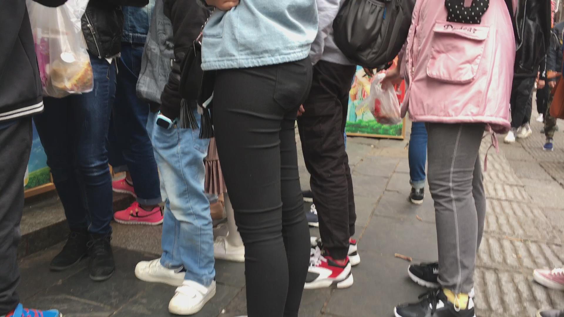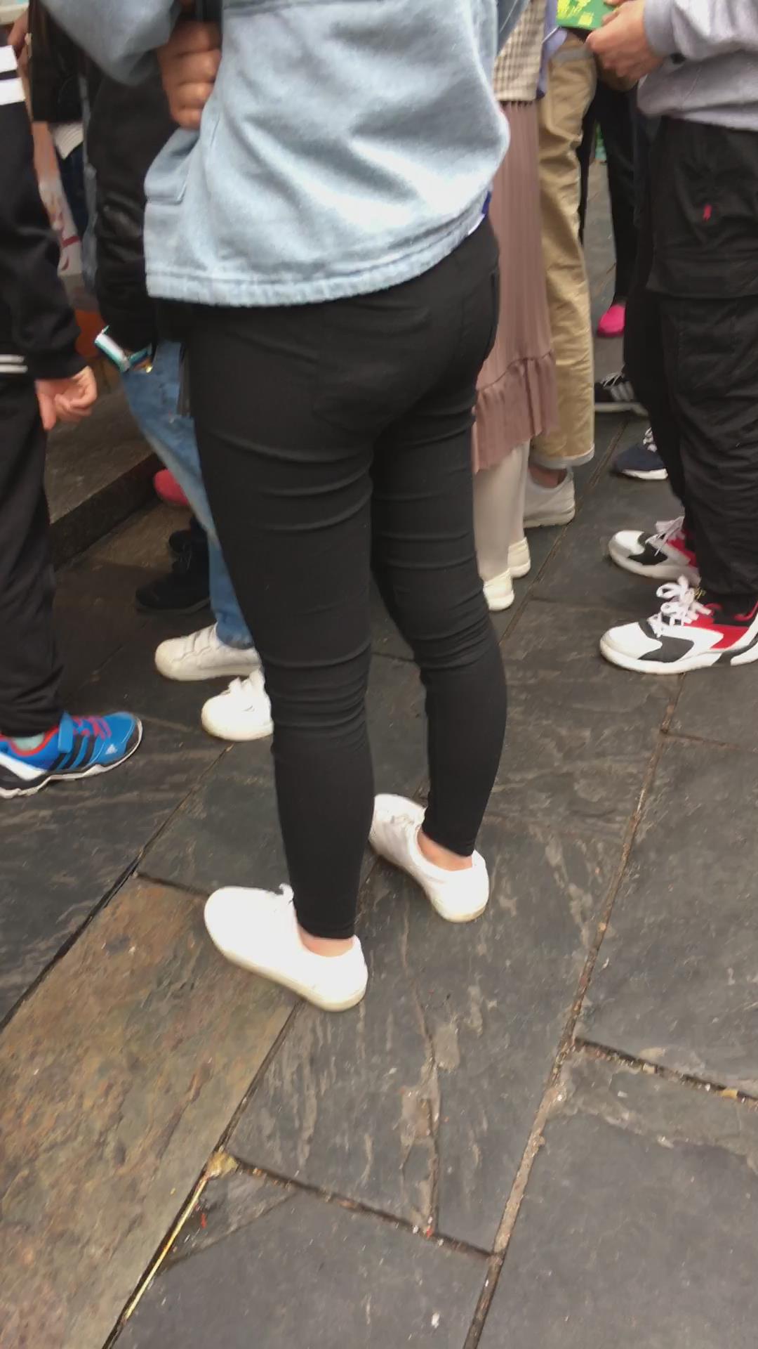 街拍黑色紧身裤翘臀青春美眉 编号5418 |