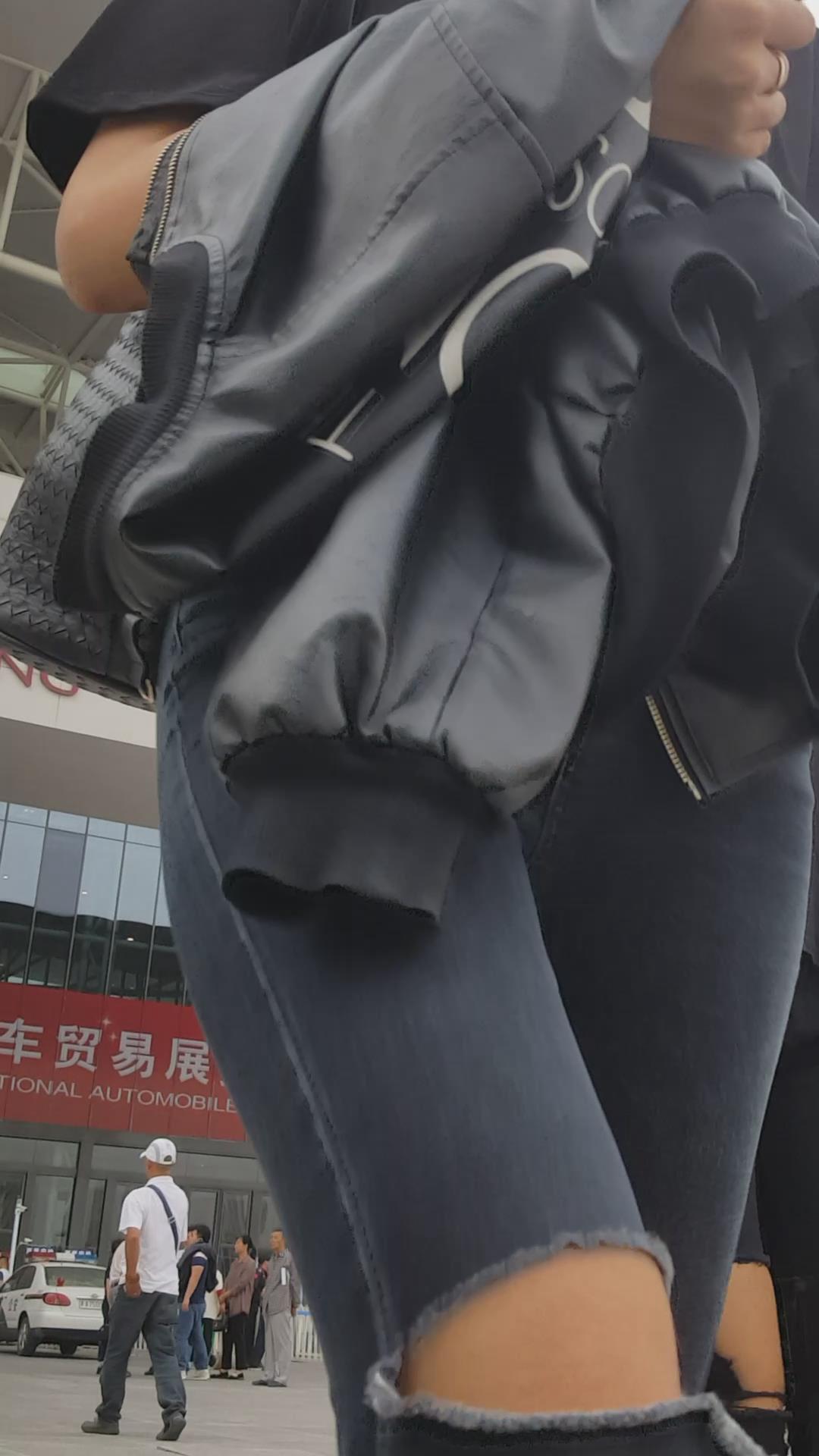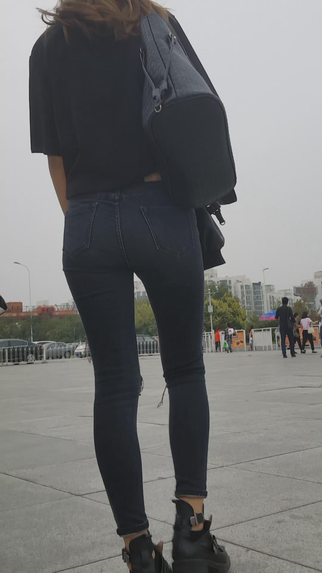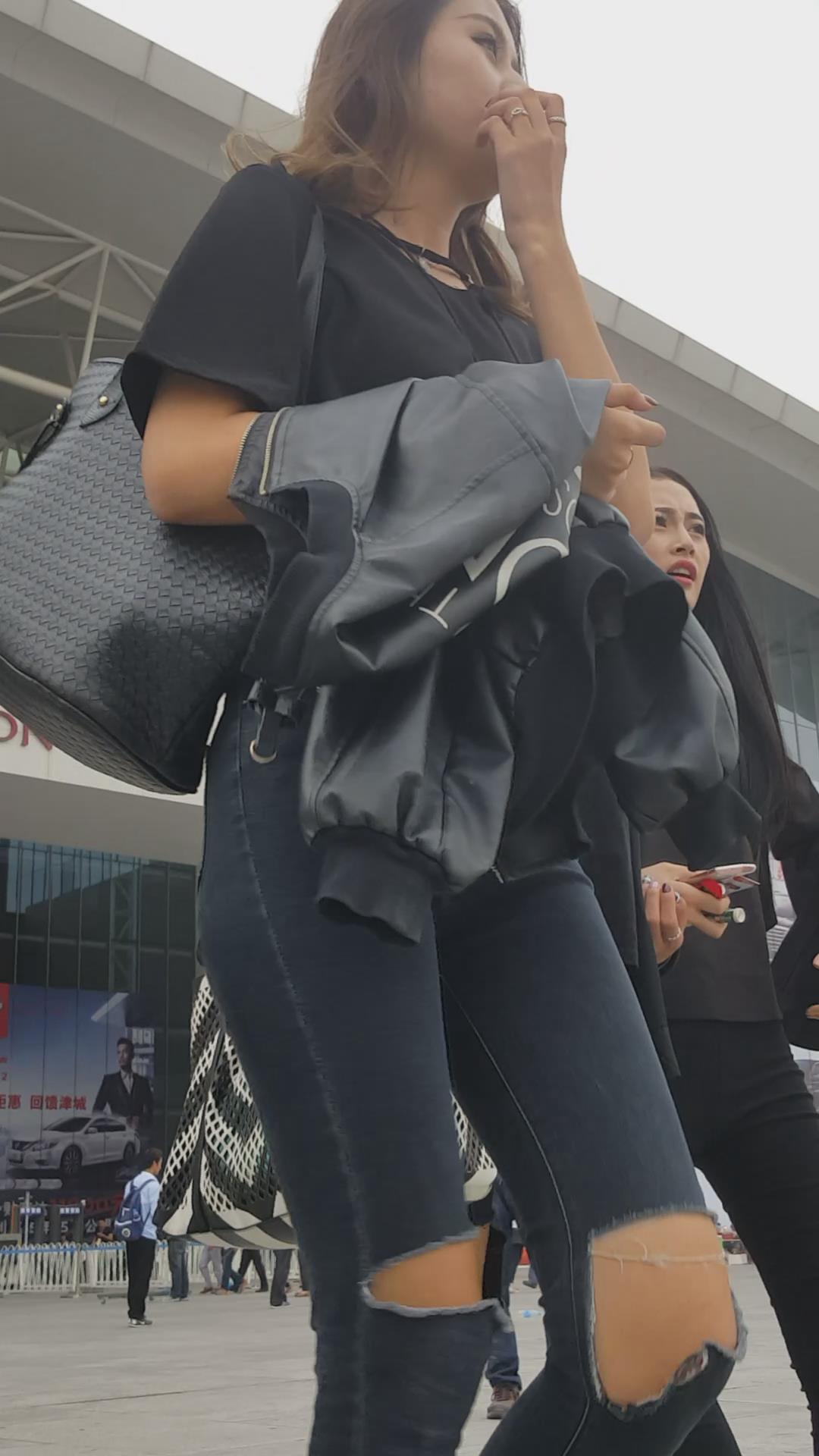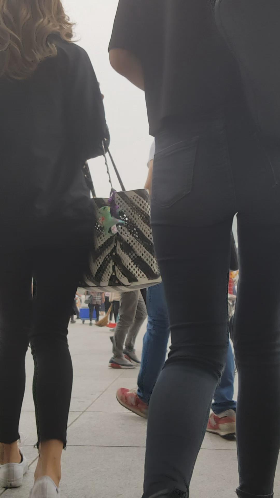 街拍颜值黑色紧身牛仔裤俩姐妹 编号5449 |