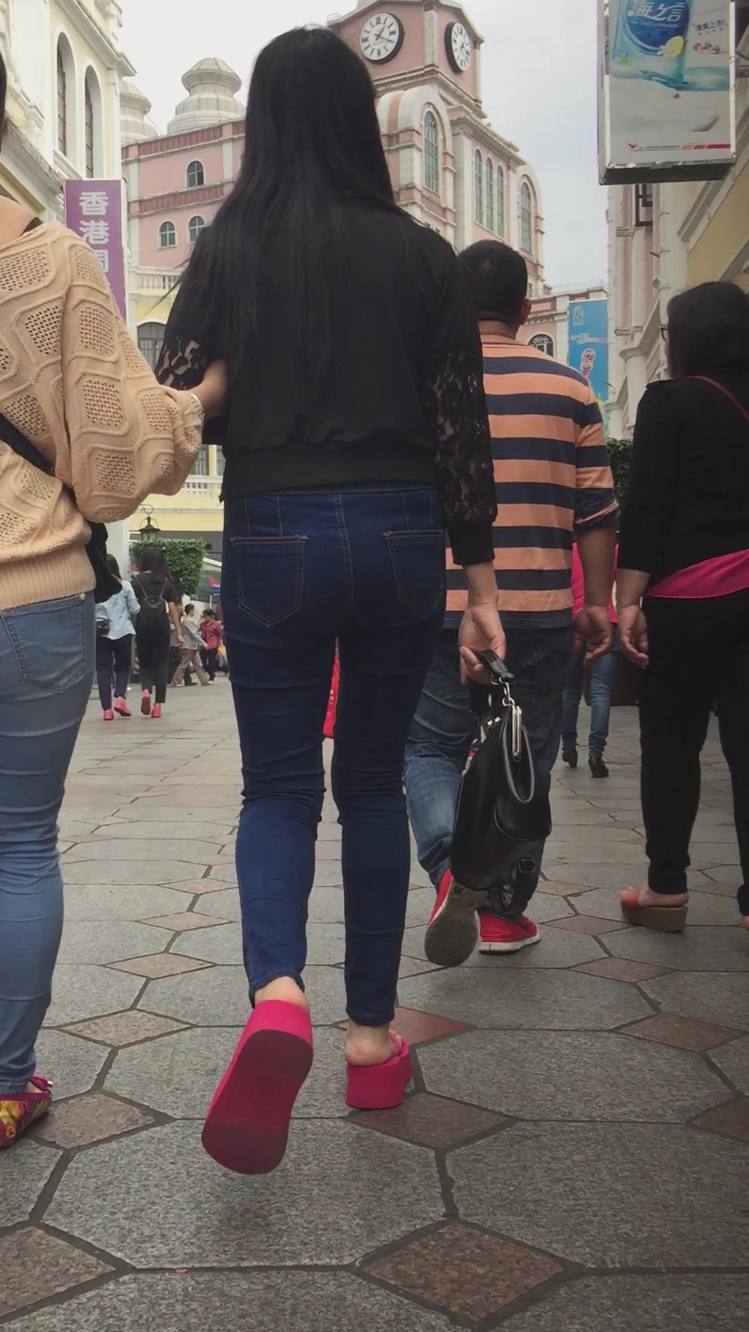 街拍红色松糕鞋紧身蓝牛翘臀妹子 编号5556 |